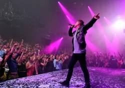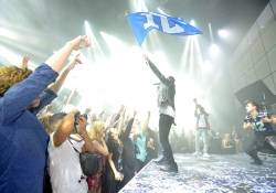 The duo hit the stage at 1 a.m. with their dance crew “The Macklorettes,” for their live performance at Light’s new weekly concert series, “The Beat.” The duo’s high-energy set opened with “Thrift Shop” followed by “White Walls,” “Same Love” (with the audience singing along) and “Irish Celebration,” where Macklemore proudly waved an Irish flag on stage. “Irish Celebration” was a late add to the set list.