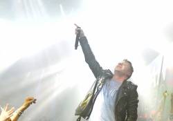 The duo closed out their show with “Can’t Hold Us” and Macklemore’s signature crowd surf. A 12th man flag, a symbol of the Seattle Seahawks, could also be seen waving proudly in honor of their upcoming appearance in the Super Bowl.