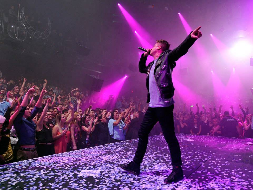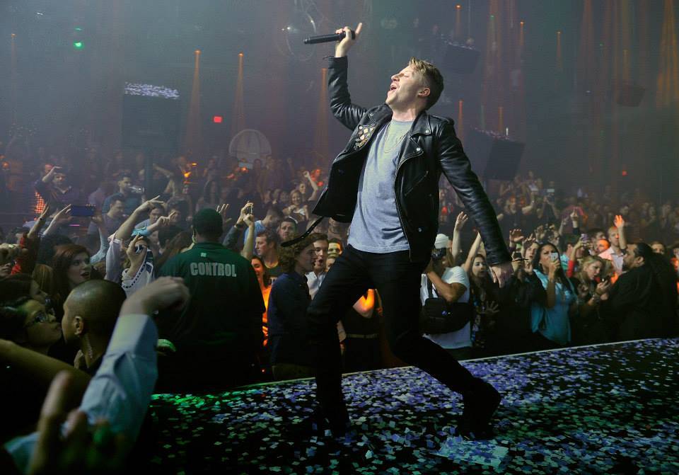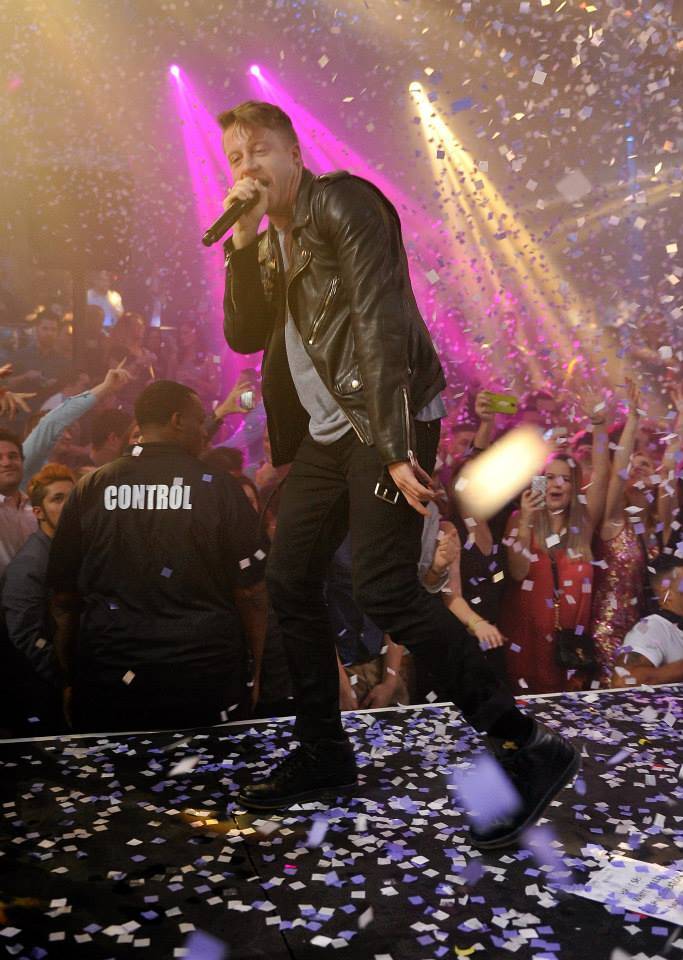 The duo hit the stage at 1 a.m. with their dance crew “The Macklorettes,” for their live performance at Light’s new weekly concert series, “The Beat.” The duo’s high-energy set opened with “Thrift Shop” followed by “White Walls,” “Same Love” (with the audience singing along) and “Irish Celebration,” where Macklemore proudly waved an Irish flag on stage. “Irish Celebration” was a late add to the set list.