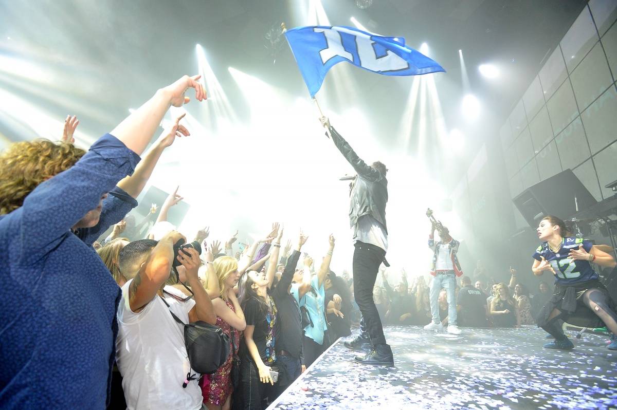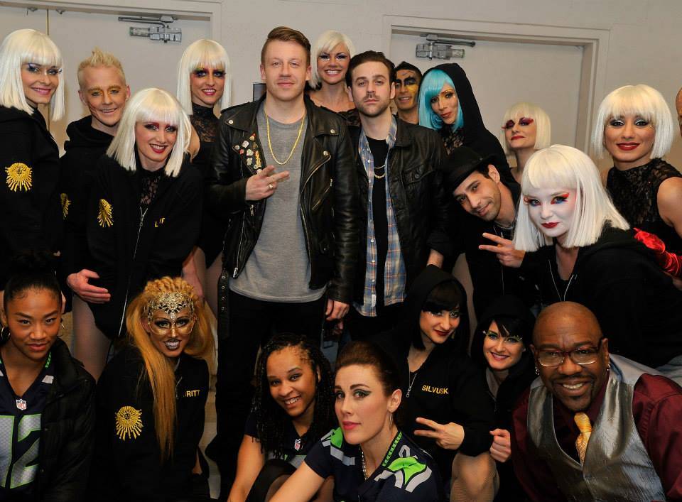 The duo closed out their show with “Can’t Hold Us” and Macklemore’s signature crowd surf. A 12th man flag, a symbol of the Seattle Seahawks, could also be seen waving proudly in honor of their upcoming appearance in the Super Bowl.