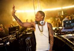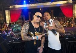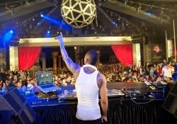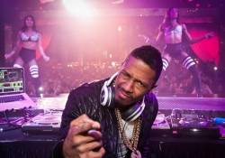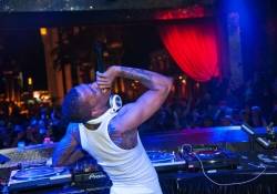 Halfway through his set, Cannon’s biker jacket came off and his celebrity friends came on.  Among those joining Cannon in the DJ booth were model Amber Rose, who is managed by Cannon. Rose instantly drew attention as she paraded into Drai’s in a low-cut backless black dress, stilettos and statement sunglasses.
