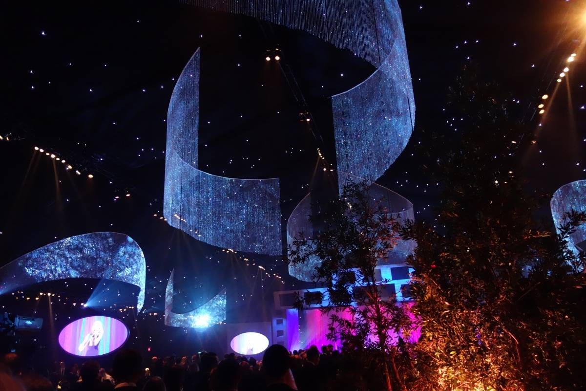 It wasn’t surprising to find out that Los Angeles-based Sequoia Productions, which handles the Governors Ball immediately following the Academy Awards created an opulent atmosphere inside the 51,000 square foot tent, where lights twinkled like stars from above, couches and chairs in lounge areas gave guests a place to relax and even the tablecloths were gorgeous.