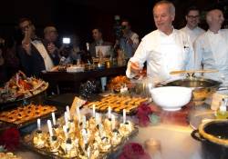 Master chef Wolfgang Puck along with chef Matt Bencivenga are catering the official affair, serving up 50 dishes from hors d’oeuvres to small plates to entrees like smoked salmon to specialized chocolate desserts shaped like Oscar statuettes. The affair even more fabulously donates uneaten food to L.A. Speciality Chefs to End Hunger.