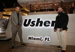 The celebration called for a private dinner aboard Usher, a 157′ super yacht built by Delta Marine. Dinner was a four-course affair on board with East Coast Jeweler Bobby Yampolsky, Haute Living CEO Kamal Hotchandani, Kevin Lyttle and pals.