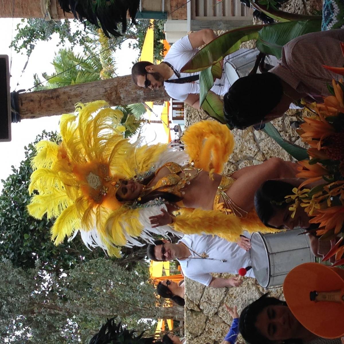 Brunch, which included French pastries, omelets, hanger steak, succulent grilled chicken and salads, concluded with the appearance of Brazilian drum players and Samba dancers who led the party from the restraint’s patio to the pool area, which had been festooned with Veuve’s signature orange everywhere.