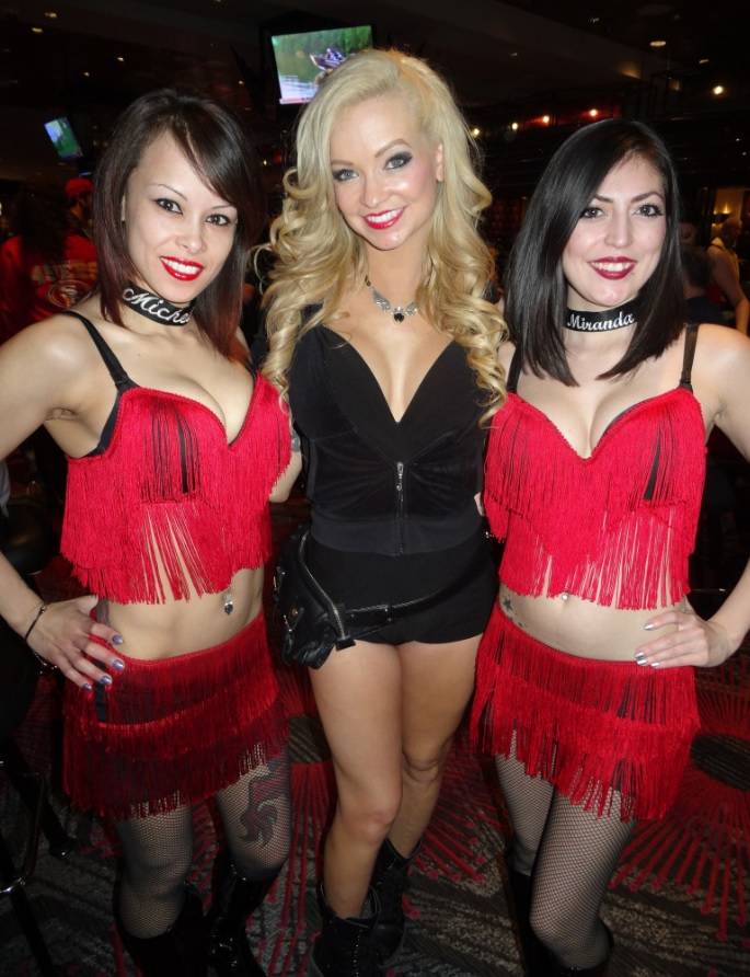 The group posed for pictures with owner Derek Stevens and Nicole Parthum just before the game. After the game Randy and Mindy took Ryan and his wife to dinner at their favorite restaurant, Andiamo Italian Steakhouse at the D Las Vegas. After dinner Mindy posed with the D Casino’s sexy Dancing Dealers.
