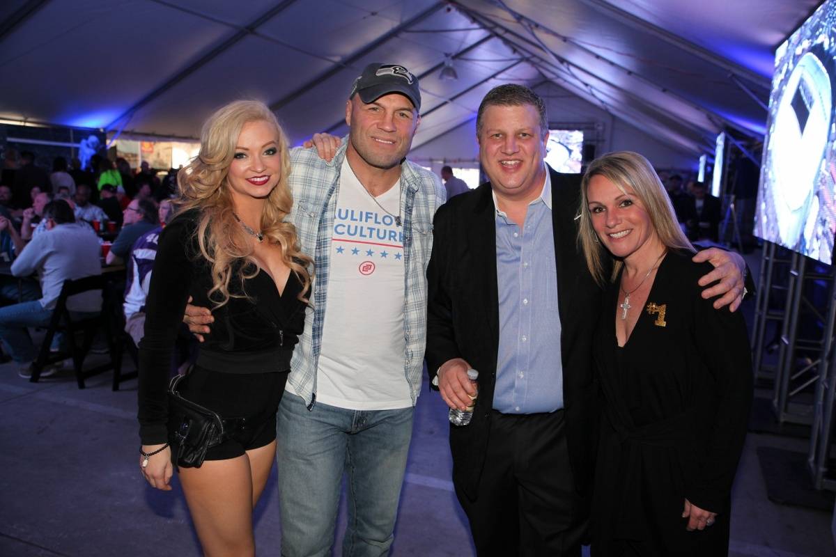 The group, which included Randy’s son Ryan Couture and his wife, partied at downtown Vegas’ new open-air events center, enclosed by a deluxe heated tent for the exclusive Super Bowl bash. Plush VIP couches, numerous televisions, several bars and game day food from American Coney Island made the party one to remember.