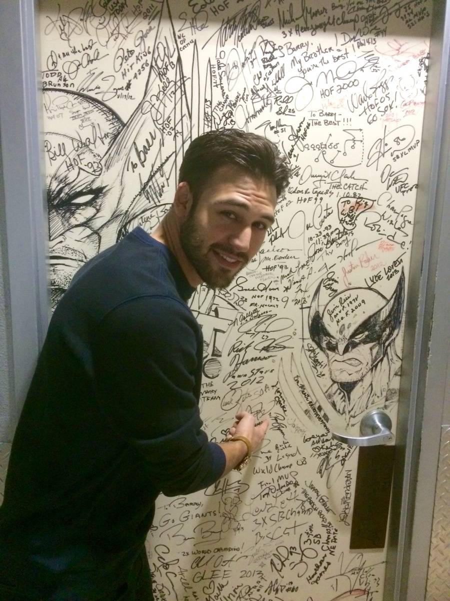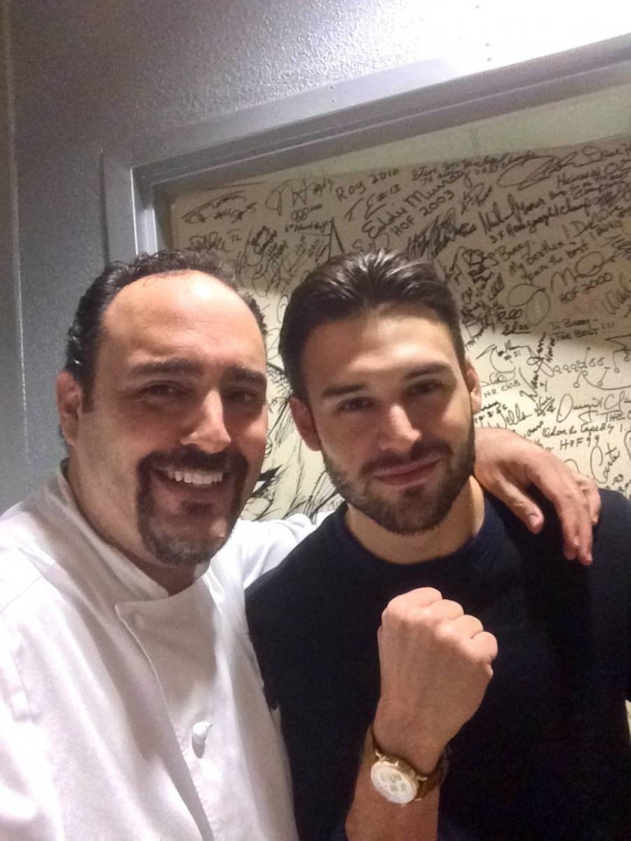 The actor later signed Chef Barry S. Dakake’s Celebrity Shakedown Door before getting a tour of the kitchen where he playfully posed with two massive steaks.