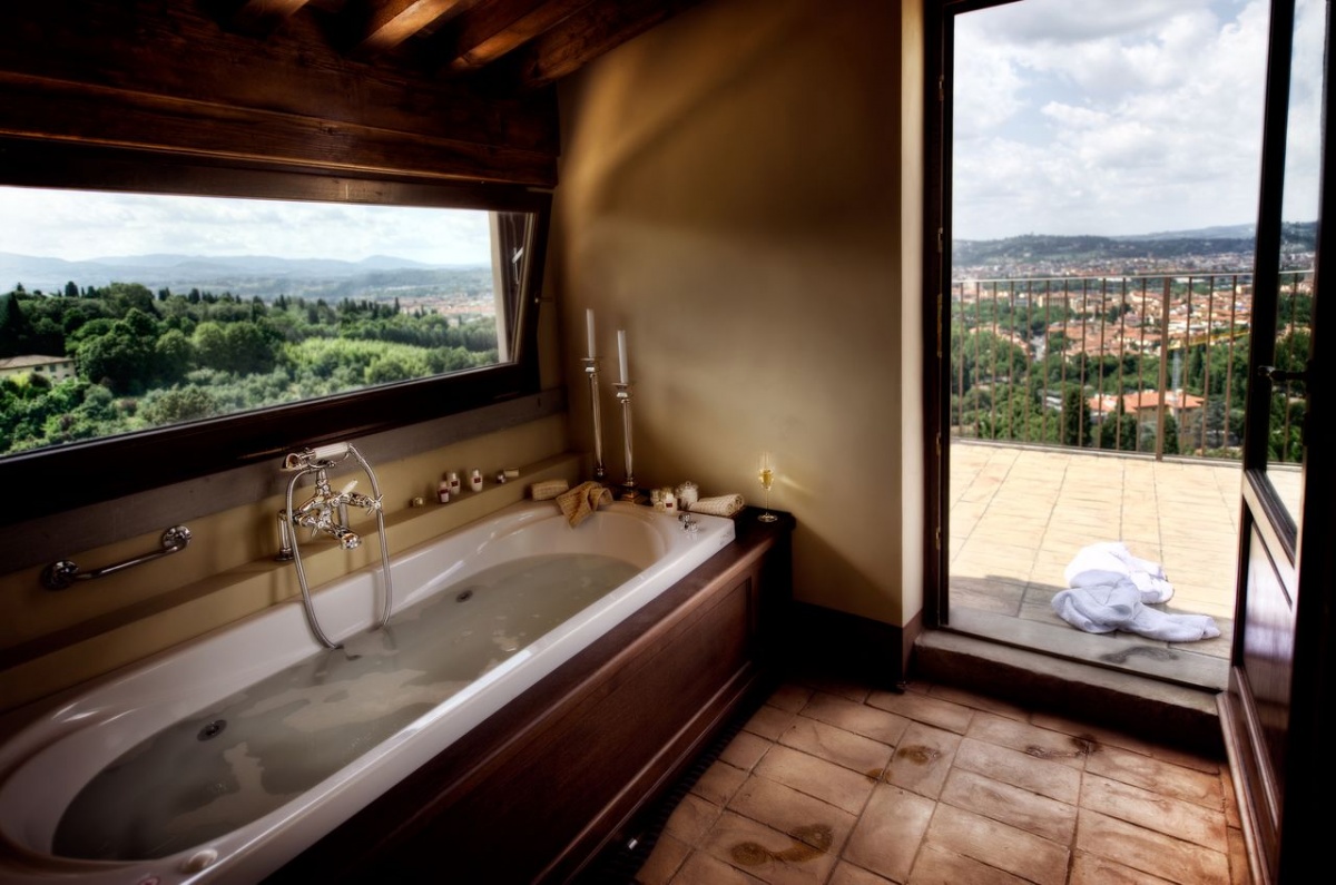 - Il Salviatino’s Dome View De Luxe rooms offer awe-inspiring views, through floor-to-ceiling glass windows, of Florence’s famed Duomo and romantic Italian gardens.