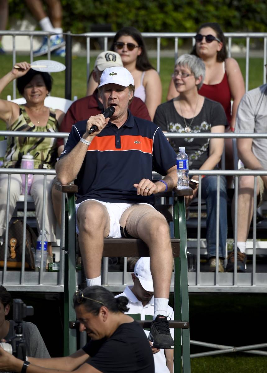 At the tournament, Ferrell was up to his usual tricks. Due to an upper quad injury, that he showcased to EVERY spectator at Desert Smash, Will was unable to play in his headline match with Justin Bieber vs. Kevin Hart/Billy Bush.  He didn’t let that stop him, however, posing as lead umpire throughout each match, cracking jokes that made Hart lose focus during his match.
