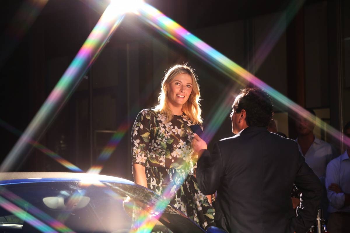 Maria Sharapova hit up a swanky celebration with Porsche for her Haute Living Magazine cover at SLS Lux in Miami’s Brickell neighborhood. She pulled up in a Porsche and walked the red carpet looking fashionable in a floral print and matching yellow Christian Louboutin heels. She spoke to reporter and posed for photos with Related Group’s Carlos Rosso, and Haute Living CEO Kamal Hotchandani but abstained from drinking as she was preparing for the Miami Open, which started the day before, on March 23rd.