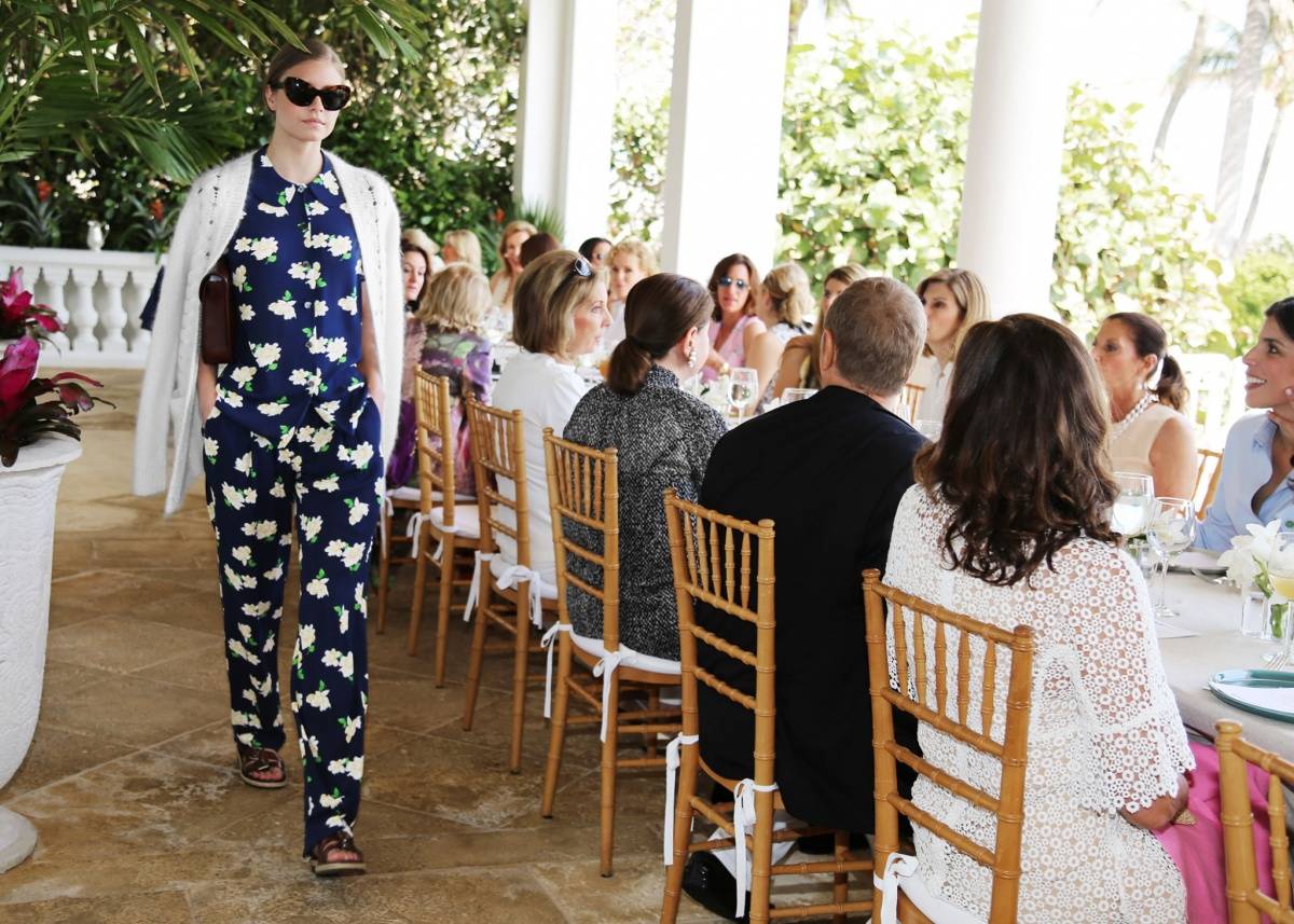 A very special charity luncheon was hosted by the Women’s Board of The Boys’ Club of New York. The posh luncheon took place at a storied, waterfront estate in Palm Beach and featured an informal fashion show of Michael Kors’ Spring 2015 collection. The fashions came in upbeat yellows, greens and navy hues and featured crisp blouses tucked into full, swinging skirts and a prominent, belted waist. Nautical and floral prints made it an especially springy spring line up.