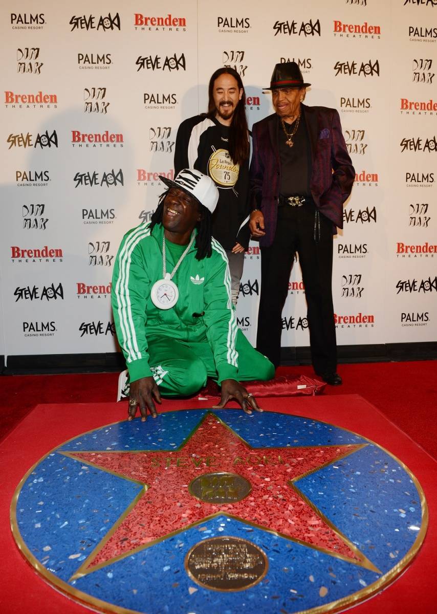 Johnny Brenden, owner of Brenden Theatres, presented crowd-surfing and cake-smashing deejay Steve Aoki with a Brenden celebrity star at the Palms on Friday night.