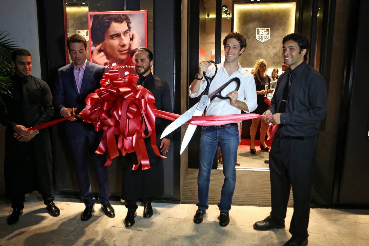 TAG Heuer’s grand opening in Miami’s revamped Design District had plenty of familiar faces. Star of One Big Happy (and Brad Pitt doppelgänger), Nick Zano came to the opening wearing a TAG Heuer black Carrera 1887 watch. The evening included ceremonial cutting of the ribbon by race car driver Bruno Senna who was in town to drive in the Formula E race that took place in downtown Miami the following night, which was sponsored by TAG Heuer.