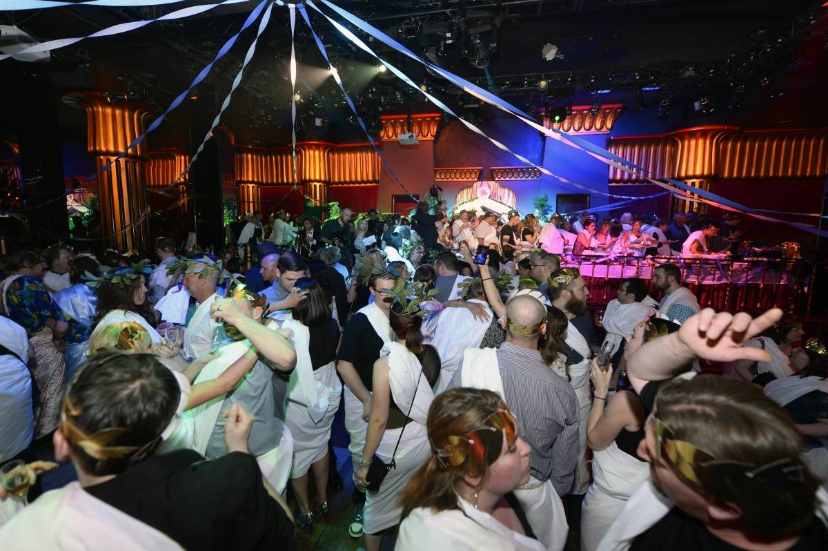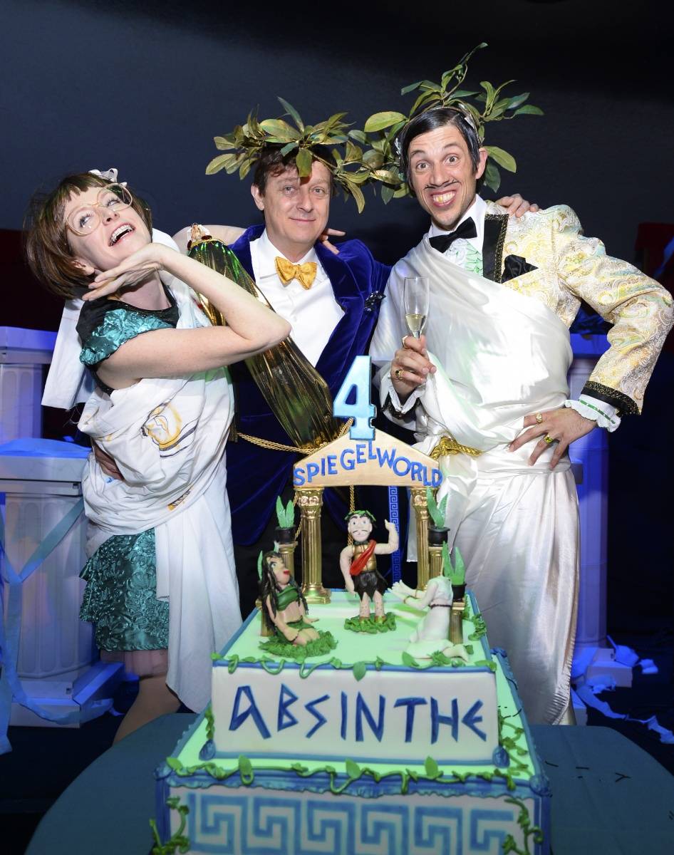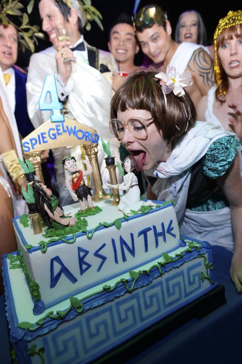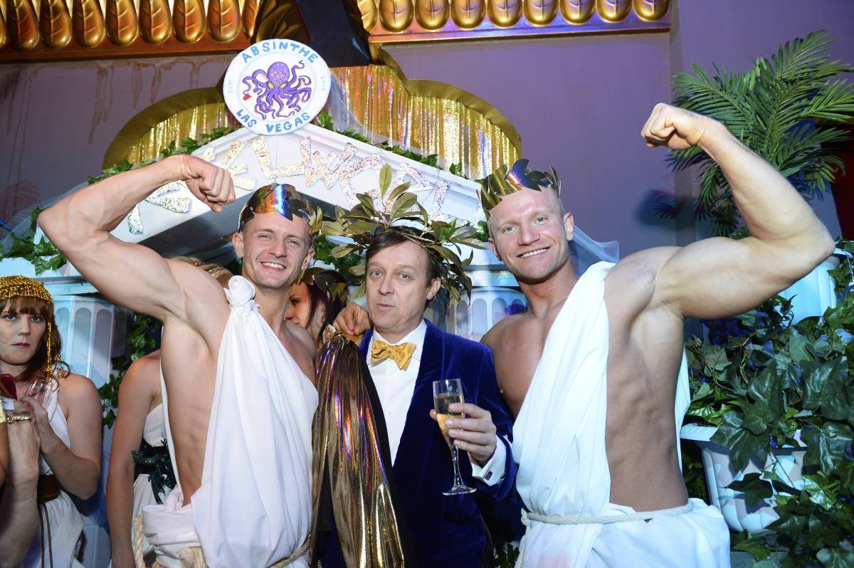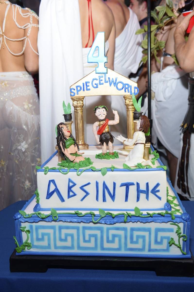 Glasses of champagne were passed and Absinthe’s eccentric producer, The Gazillionaire, took the stage to thank guests for their support over the last four years. Guests raised a glass in celebration as the company was presented with a beautiful cake inspired by the great Caesar himself. Dancing ensued with DJ Crykit spinning the best hits of the ‘80s as a nod to the Animal House fuled theme as partiers posed for photos at the Greek-inspired photo booth, drank from a Gazillionaire-inspired shot luge, enjoyed libations and light bites.