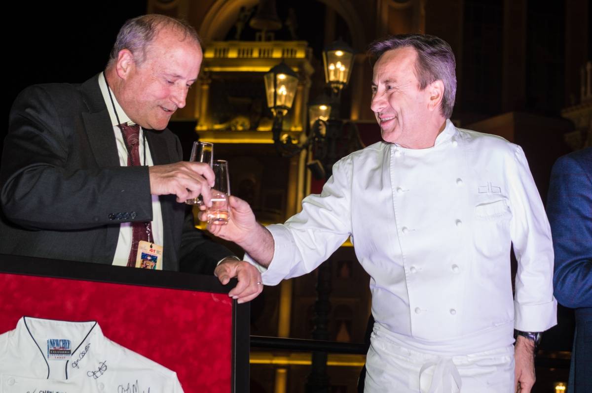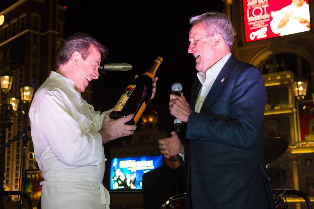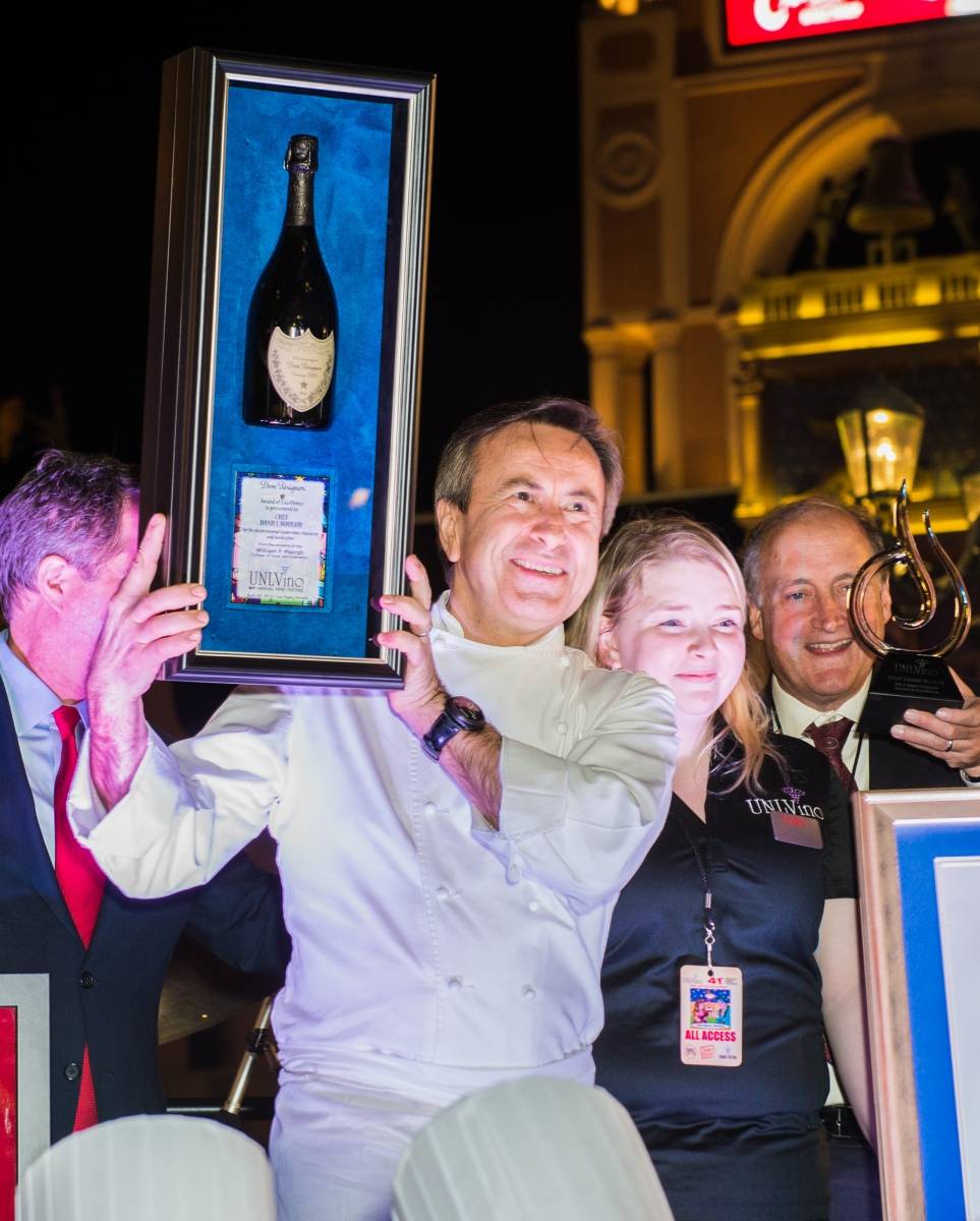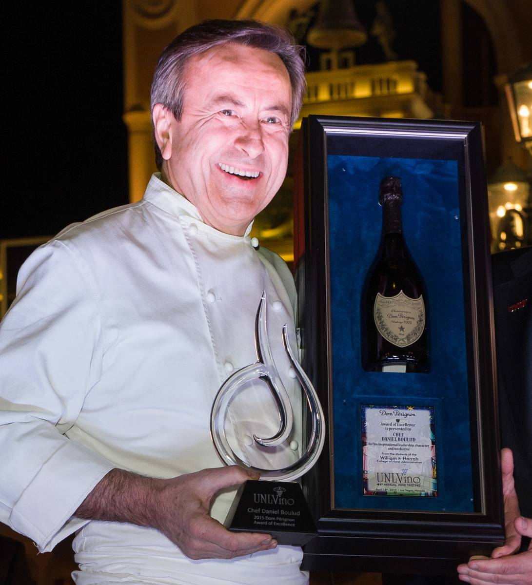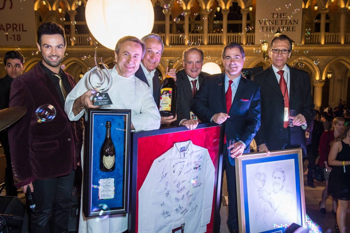 Chef Daniel Boulud received the prestigious Dom Pérignon Award of Excellence during UNLVino’s Bubble-Licious at the Venetian on Thursday. The James Beard award-winning chef was surrounded by colleagues and guests when he was honored for his work as a hospitality industry leader, a recognition bestowed to culinary mavericks by UNLVino.