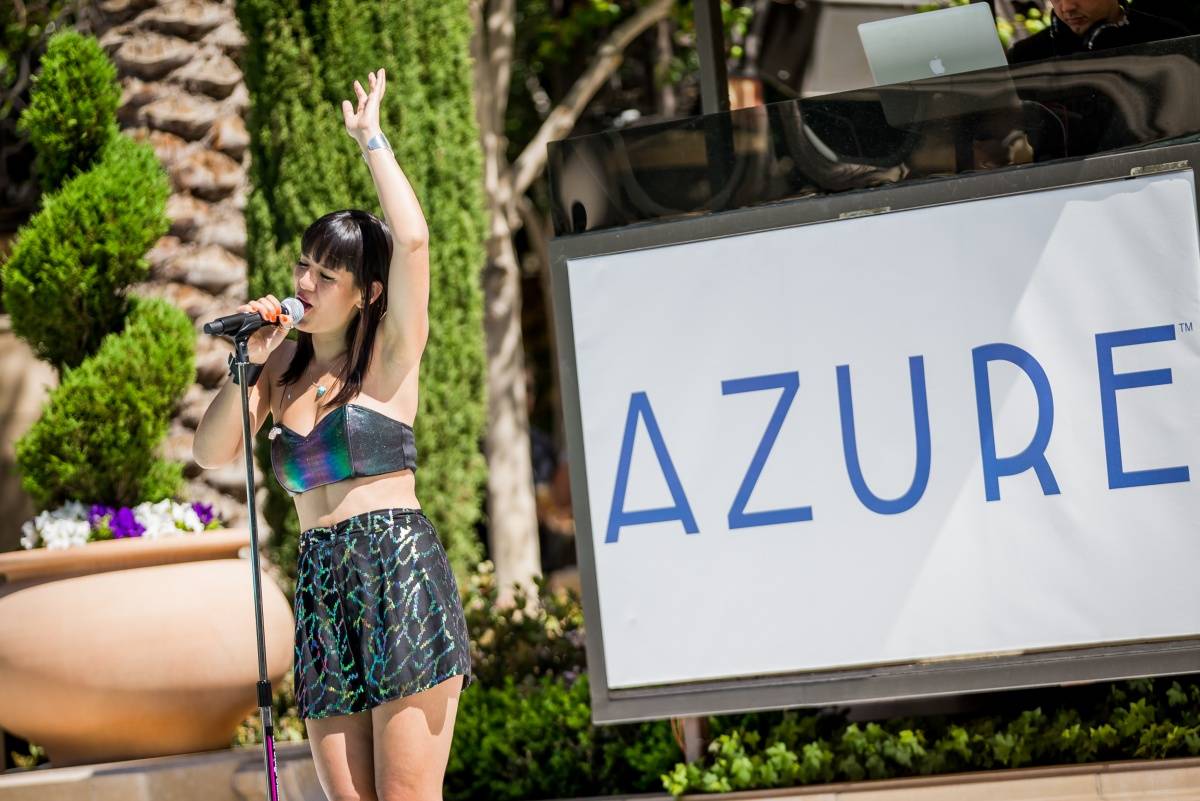 Singer Fiora ushered in the 2015 pool season at Azure Luxury Pool at the Palazzo on Saturday afternoon.