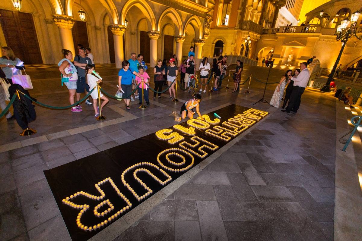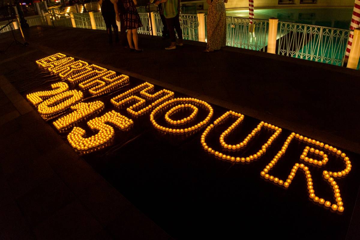 The Venetian, Palazzo and Sands Expo celebrated Earth Hour 2015 on Saturday night from 8:30 p.m. to 9:30 p.m. with a candlelight display at Doge’s Palace Plaza in front of the Venetian. The resorts also turned off the marquees and non-essential outdoor lighting.