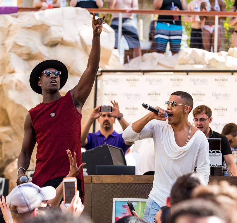 Norwegian singing duo Nico & Vinz performed at Rehab Pool Party at the Hard Rock Hotel on Sunday afternoon. The pair known for their his “Am I Wrong” kept the crowds entertained. Photographer Erik Kabik shared his best photos from the party.