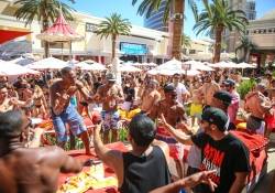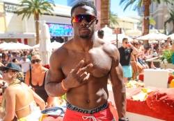 San Francisco 49ers running back Reggie Bush brought a bachelor party to Encore Beach Club at Encore Las Vegas on Saturday. Celebrating a pal’s upcoming nuptials, Bush and friends, including ESPN NFL commentator Donte Stallworth and Beyonce choreographers/dancers Les Twins, partied in high-style in a private cabana overlooking the hot pool party action.