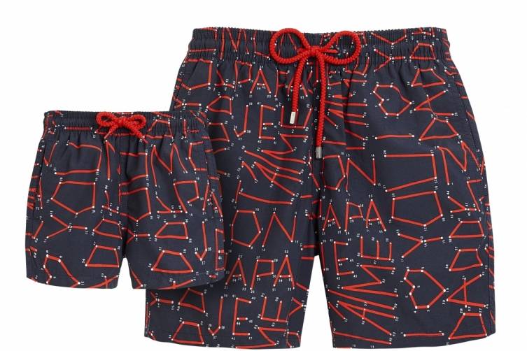 Preen by Thornton Bregazzi “low tonka” sandal $496Vilebrequin father/son swim trunks, men’s: $250, kids: $140, Toddler: $120. Available at www.vilebrequin.com