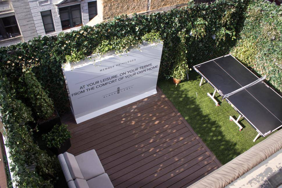 The four floor penthouse has wide-open living room and kitchen areas that feature stylish and modern design aesthetics. Those aesthetics are coupled with little touches that mirror the styling found in Lincoln’s Black Label trimmed vehicles. The top of the penthouse features a split-level deck with a in-ground pool and views of 17th street. A patio across from the master bedroom features a comfy patio with a ping-pong table and other party items.