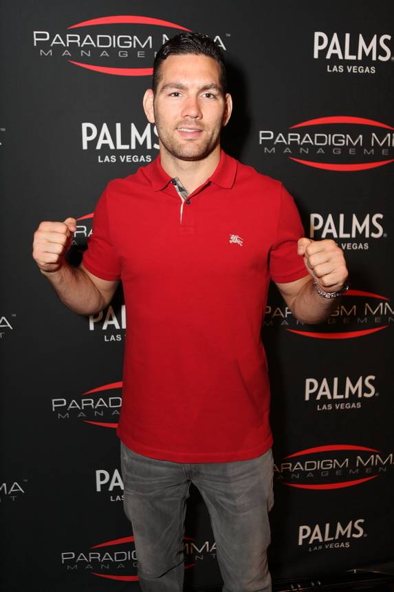 Defending middleweight UFC champion Chris Weidman celebrated his big win over Vitor Belfort on Saturday night at Ghostbar at the Palms. Weidman, arrived with a crew of 20 people that included his wife, close friends and family and his team.