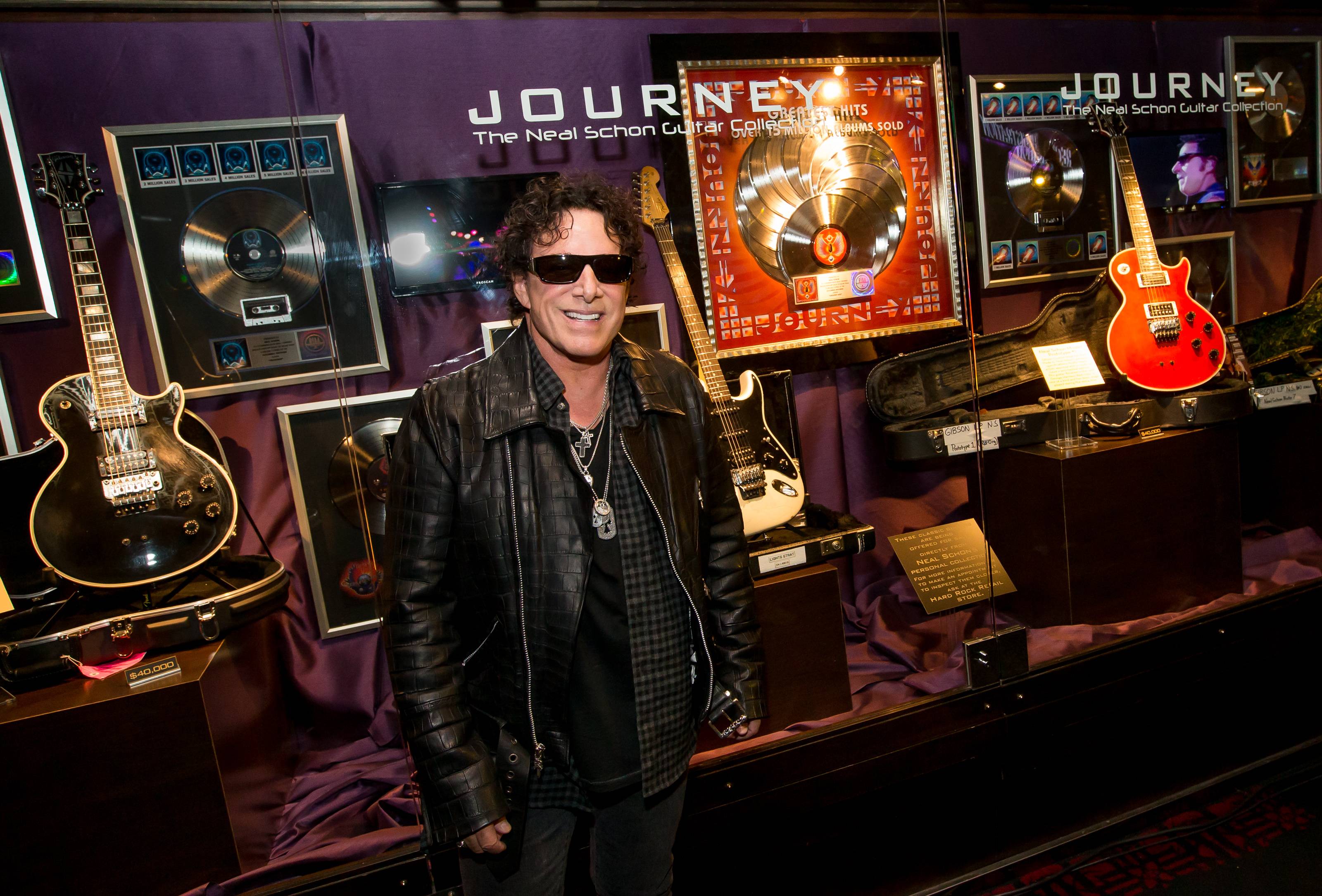 Following the Journey unveiling, Schon led fans to his own display case, which features four custom guitars from his personal collection. Stone addressed the crowd to let guests know that this is the first time Hard Rock Hotel has ever displayed memorabilia that is also available for purchase. The guitars range from $40,000 to $125,000 and if they are bought during Journey’s residency, the buyer will get to meet Schon and receive a replica Journey Platinum record. Any or all guitars can be seen and played by appointment by calling 702.693.5000.