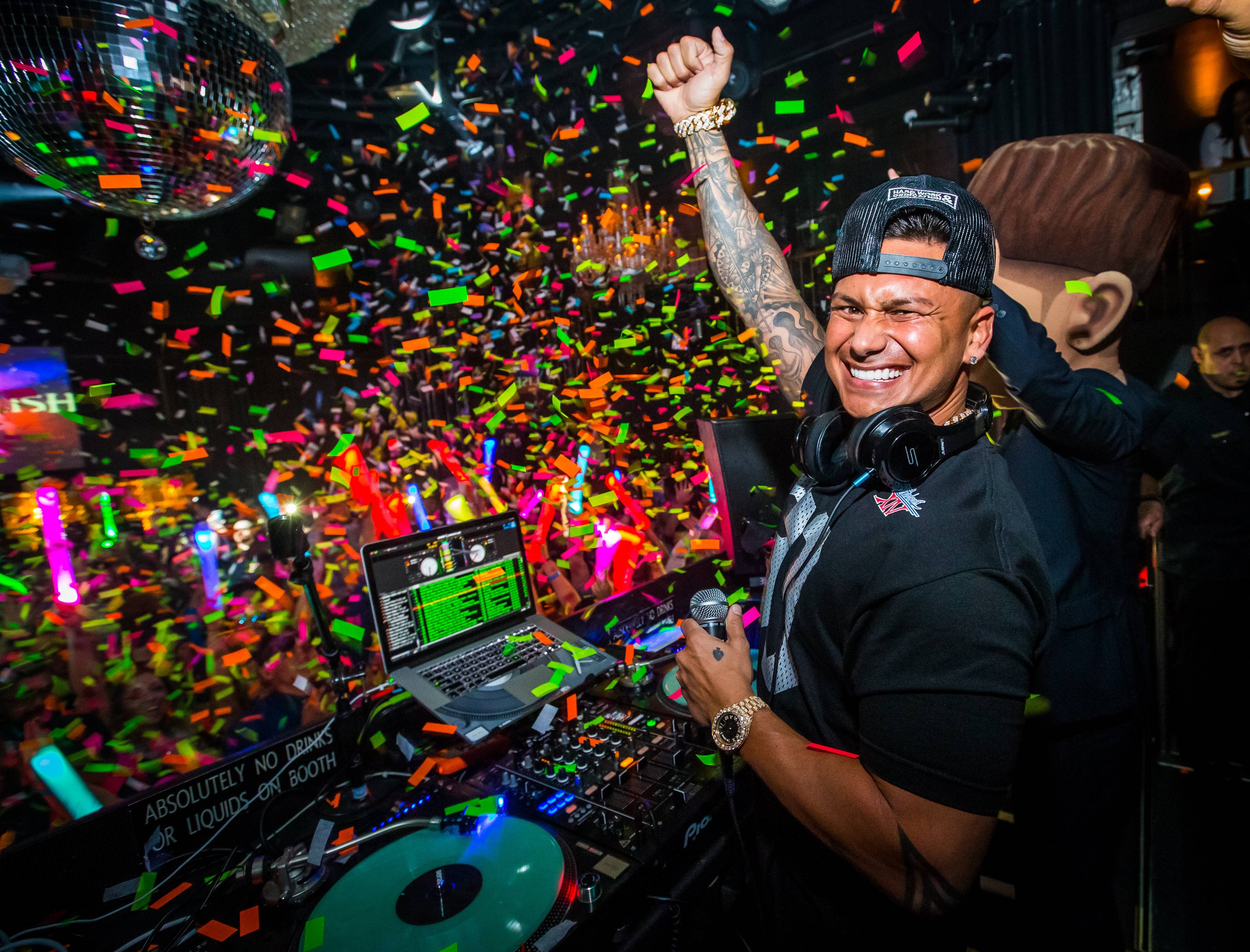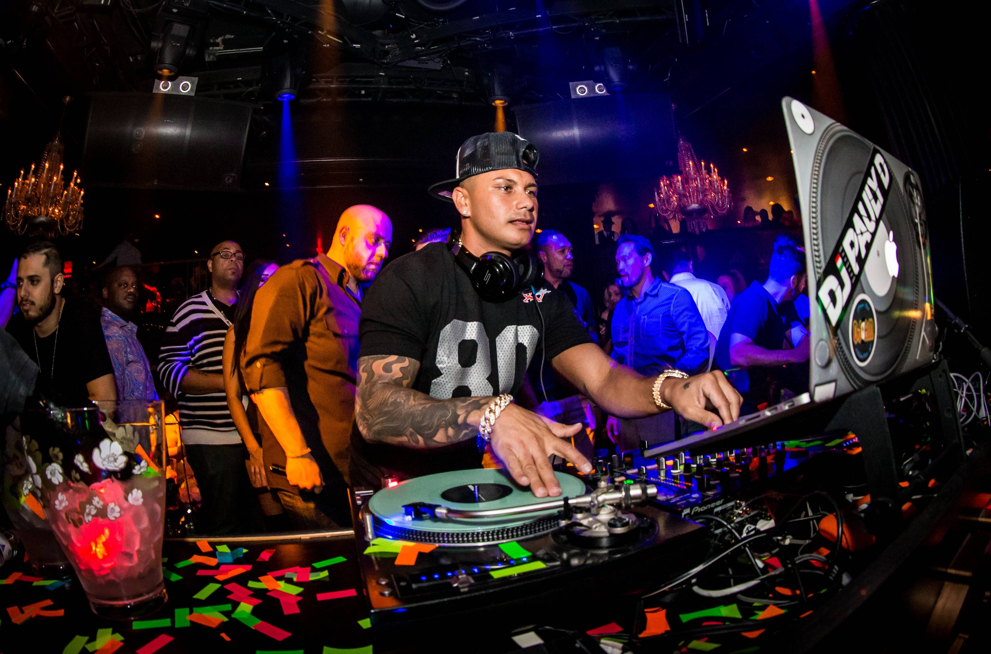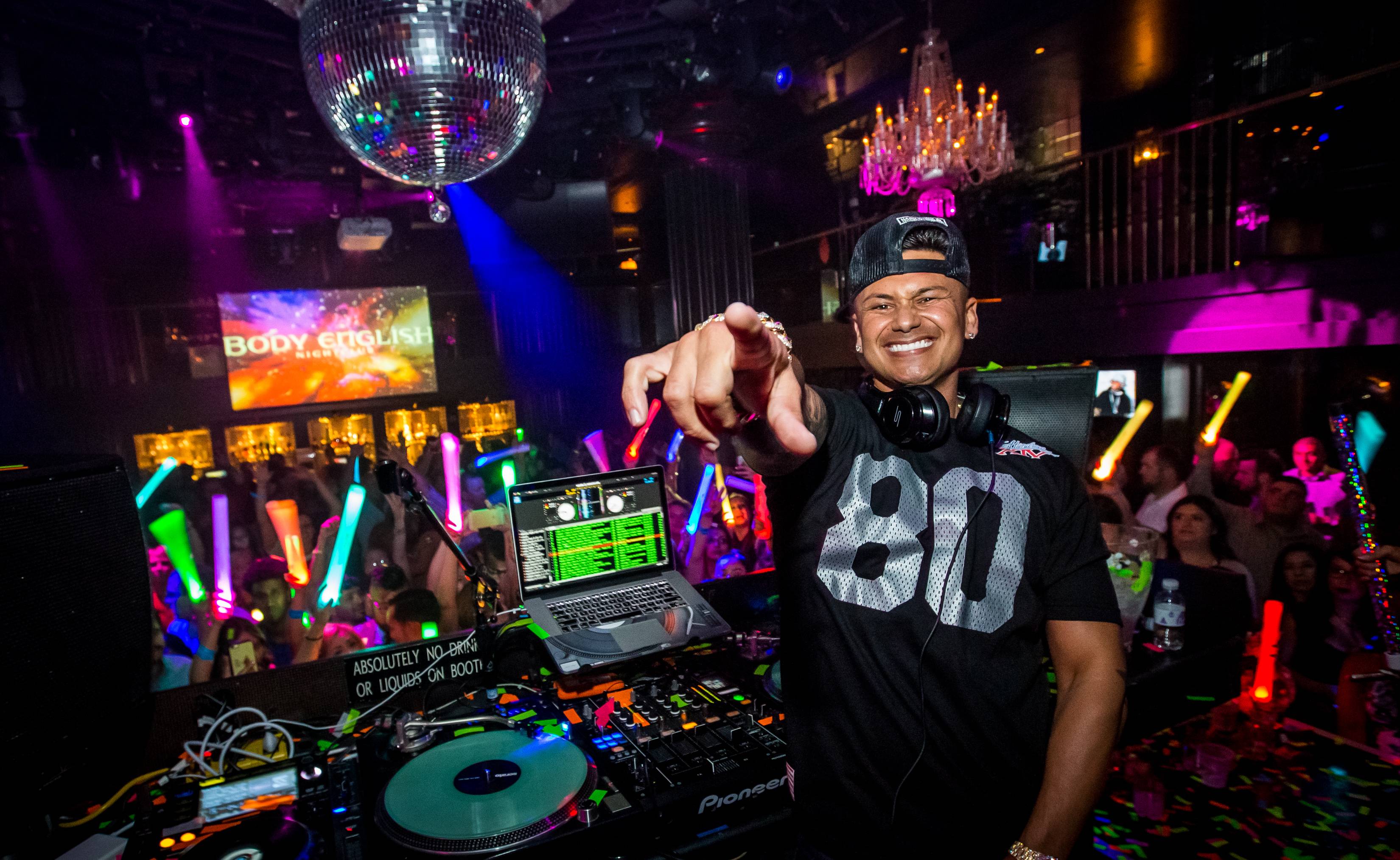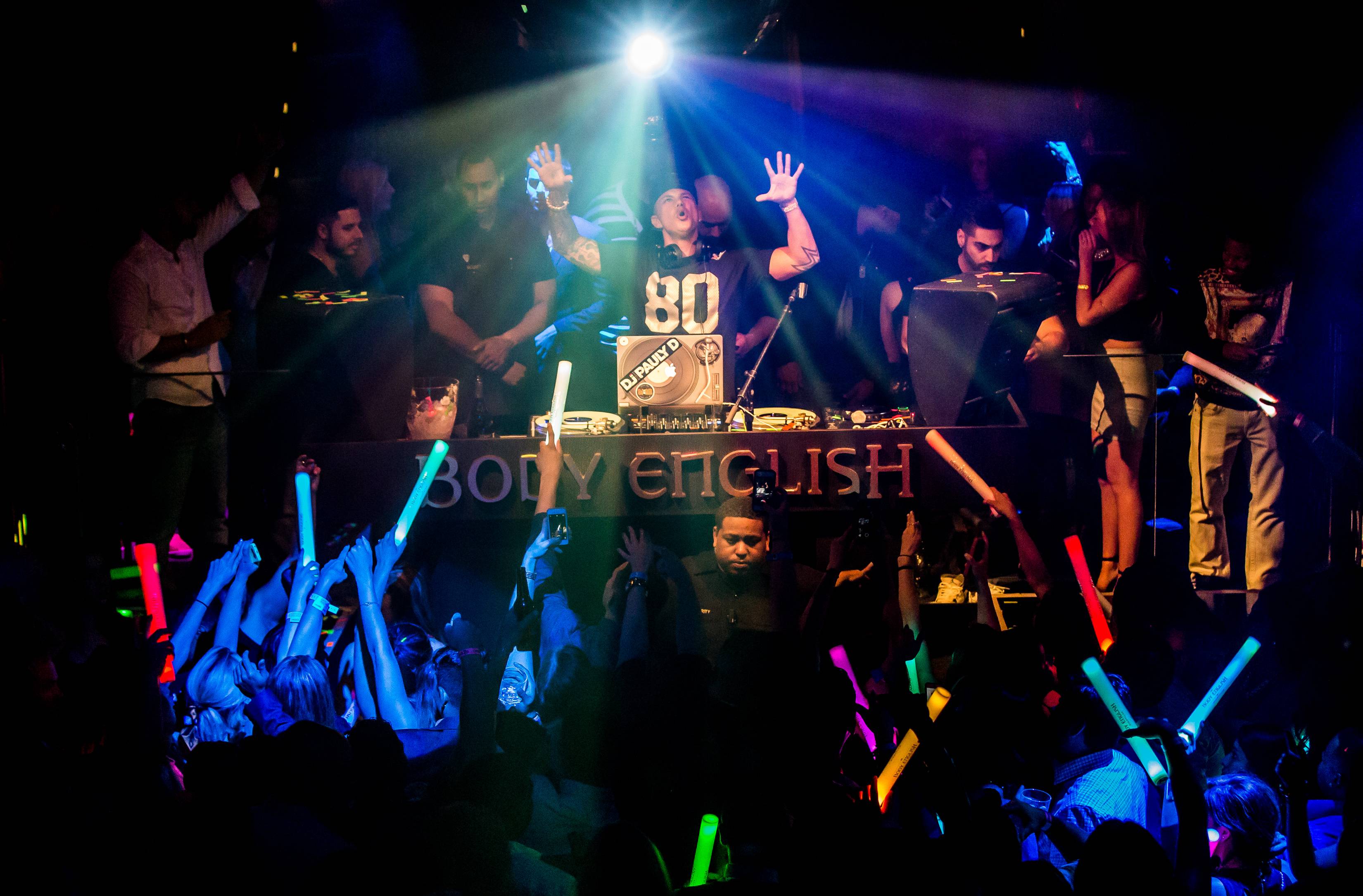 DJ Pauly D turned up the noise at Body English Nightclub at the Hard Rock Hotel on Saturday night. Fans screamed as he hit the stage and took over the turntables. “Scream if you love Las Vegas!” yelled the reality TV star to hundreds of shouting fans.