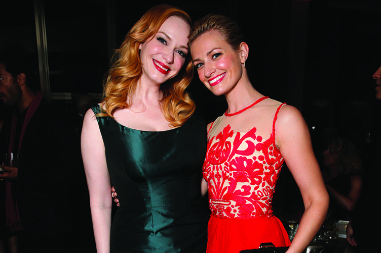 IMAGE DISTRIBUTED FOR AMC – EXCLUSIVE – Christina Hendricks, left, and Beth Behrs attend AMC’s Black & Red Ball to celebrate the final episodes of “Mad Men” at Dorothy Chandler Pavilion on Wednesday, March 25, 2015, in Los Angeles. (Photo by Todd Williamson/Invision for AMC/AP Images)