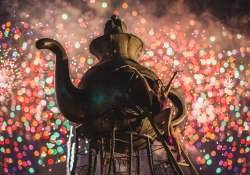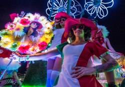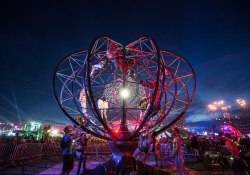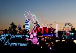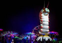 Throughout the night, imaginative art cars weaved in and out of the crowd with theatrical performers riding aboard for a parade of color and sound. Traveling on the parade route were Insomniac’s signature Wide Awake and Boombox art cars as well as the 35 foot long Inchworm Art Car and the mutant vehicle the Inky Pacman Car.