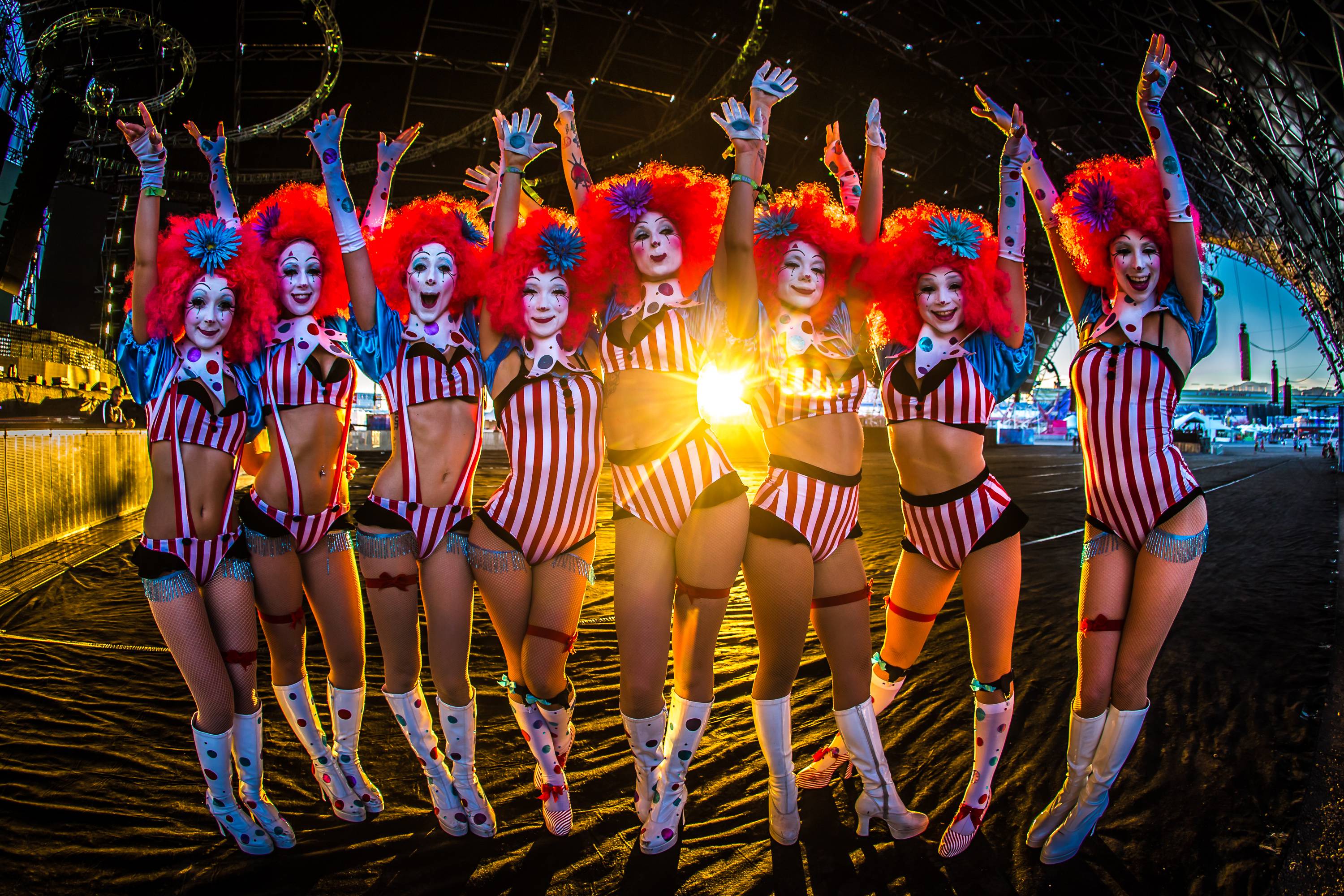 The famous EDC theatrical performers captivated audiences with their quirky costumes and graceful dancing while interacting with fans throughout the evening. At Midnight, the Sparkle Pops, Military Brats, Cosmic Cuties, Bumble Bee Honeys, Cyber Angles and Toy Soldiers paraded through Carnival Square showing off their infectious energy and bubbly personalities.