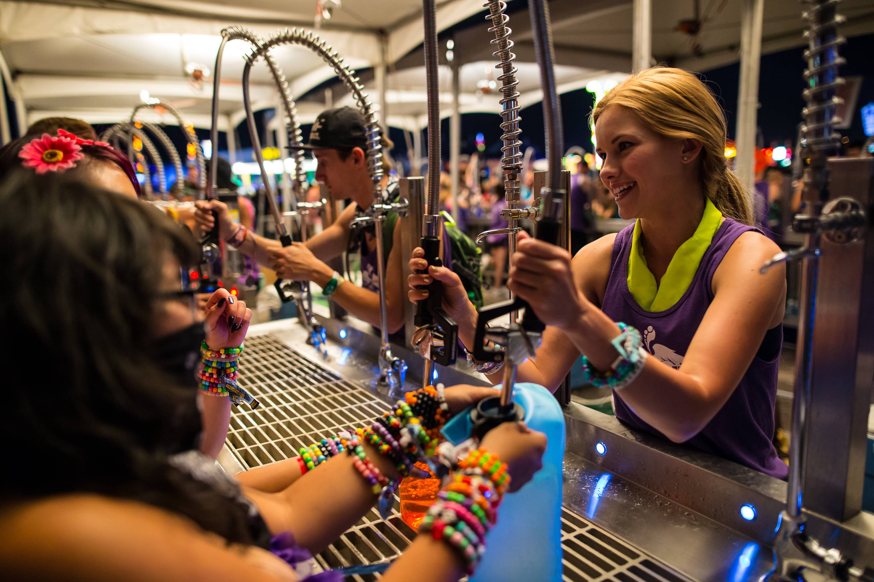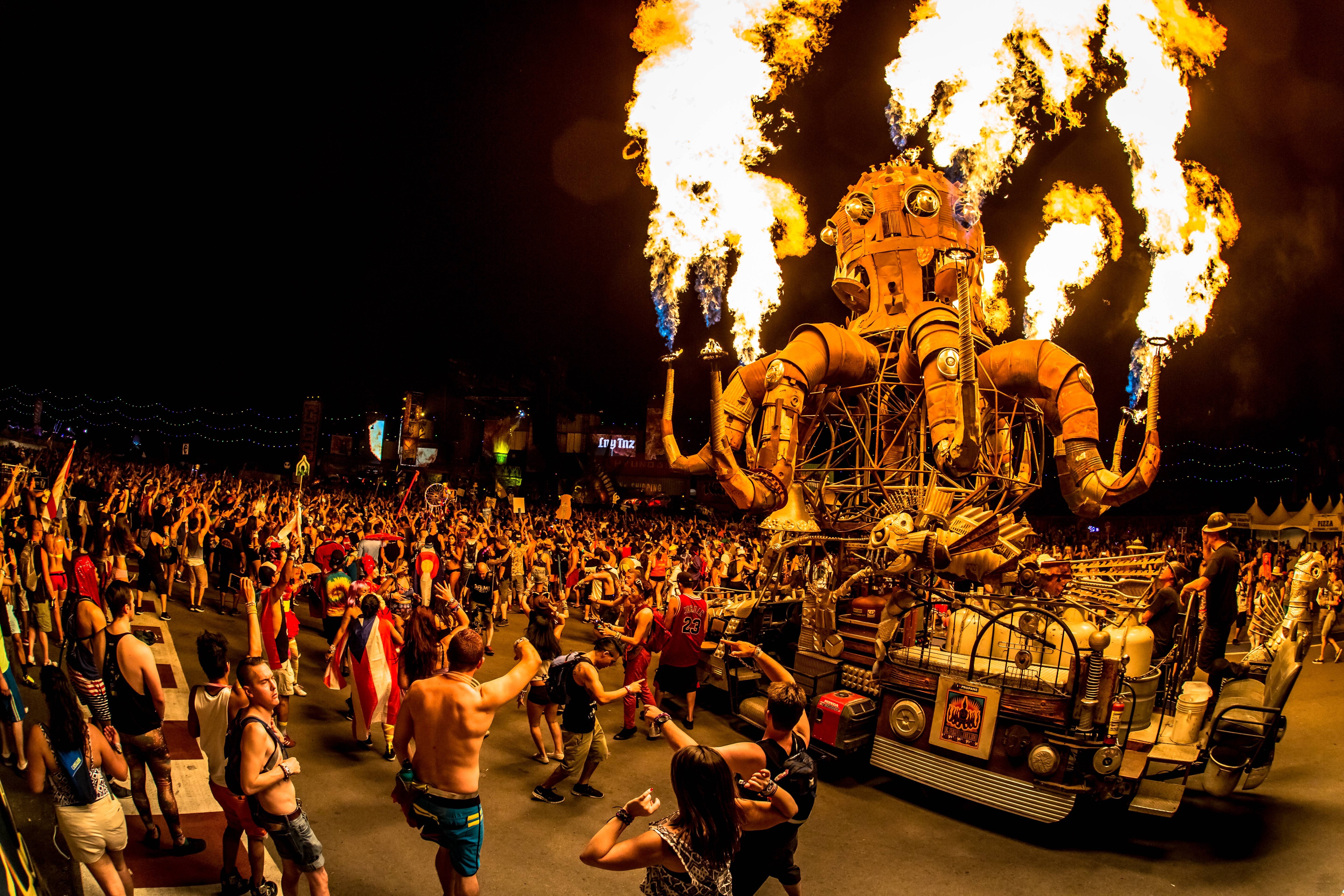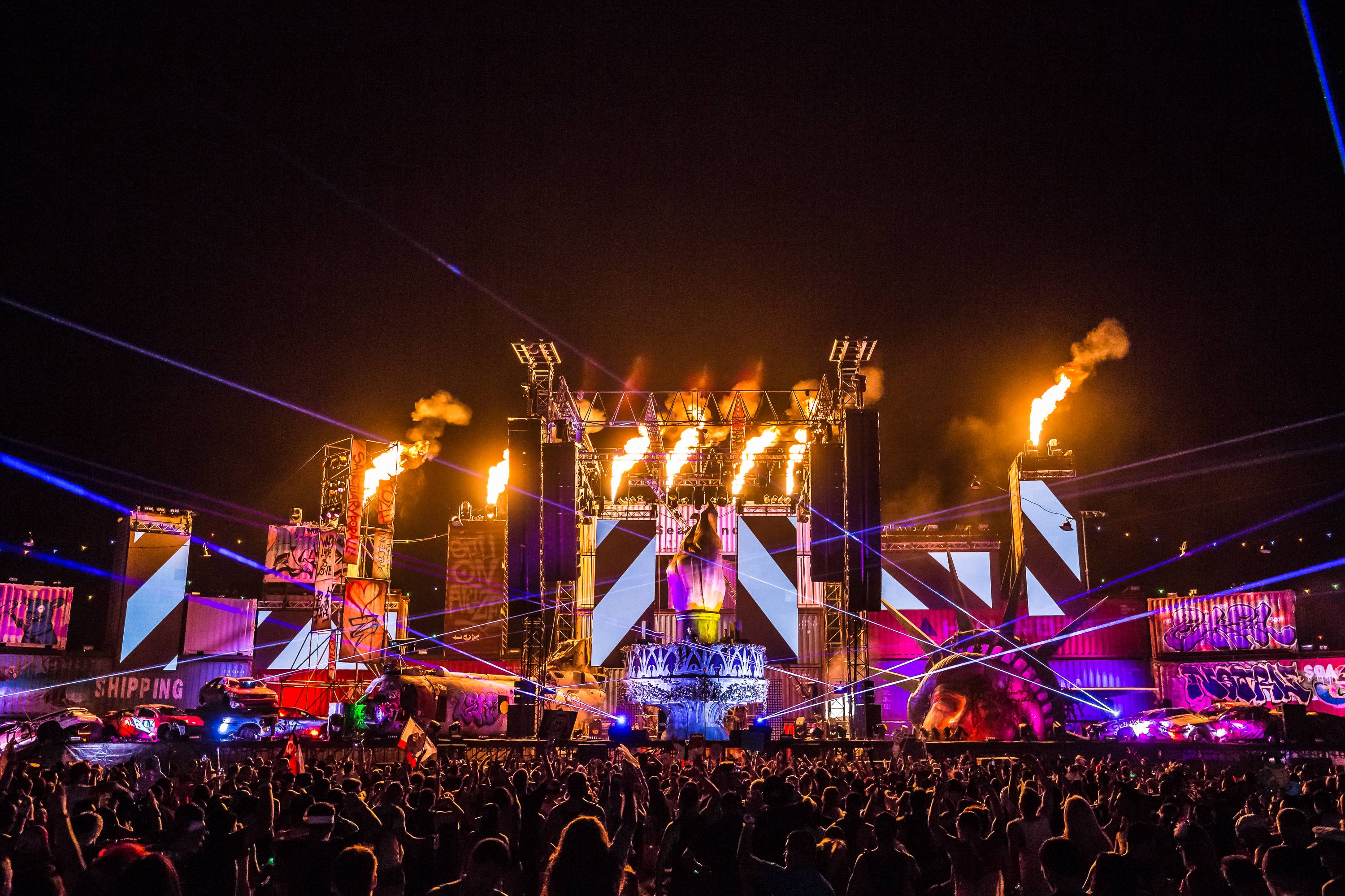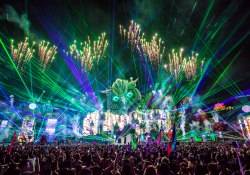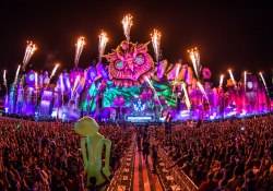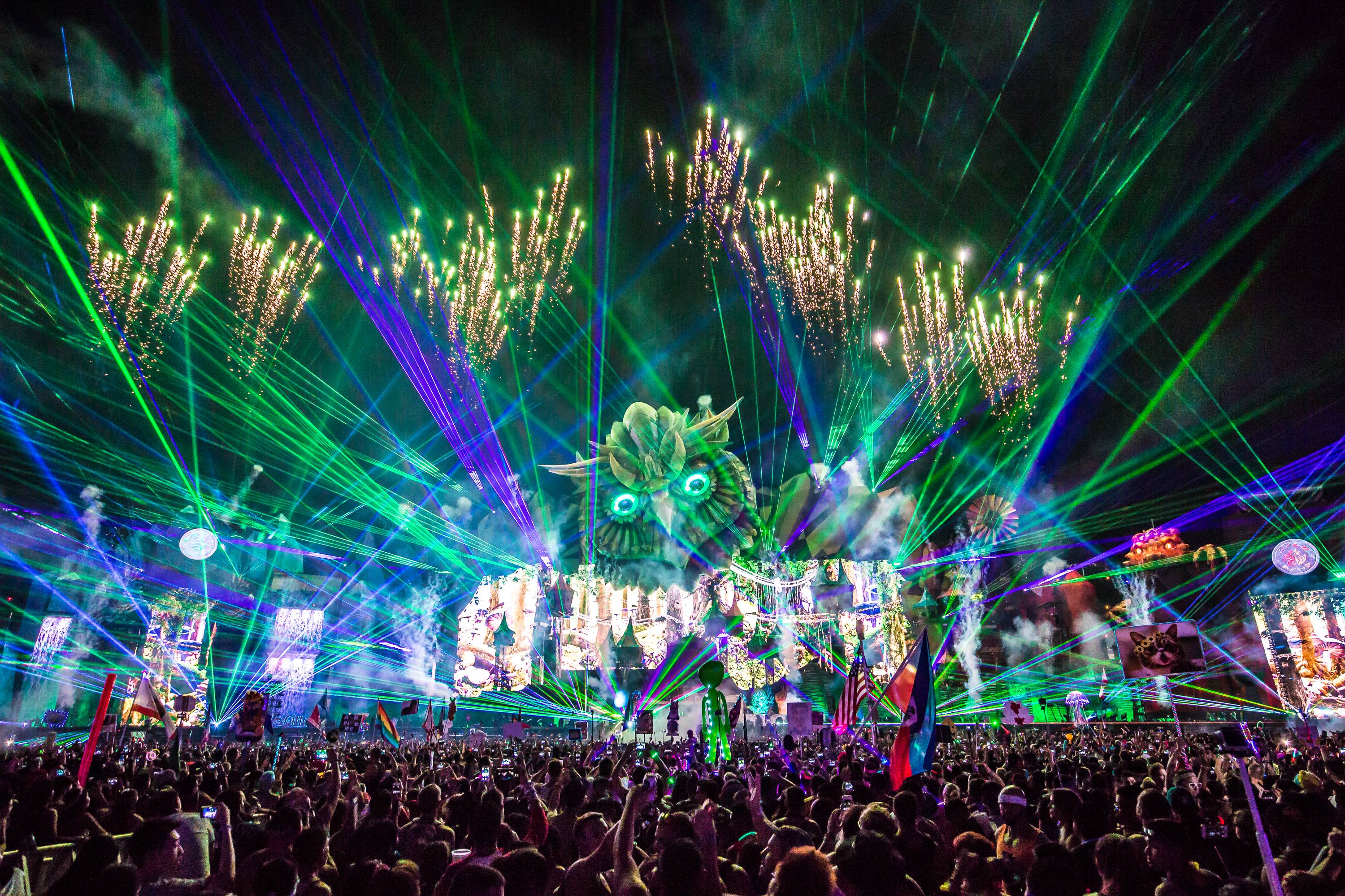 Insomniac unveiled the brand new kineticFIELD stage, dubbed the Crystal Village, drawing its design from the inspiration of the four elements — Earth, Fire, Water and Air. The massive stage spans an incredible 480 feet wide and stands 100 feet tall, making it the largest stage in North America. One thousand lighting fixtures, 40 lasers, 22 flame units, 15 confetti blowers and a beautiful water fall made the stage appear like a living, breathing piece of art.