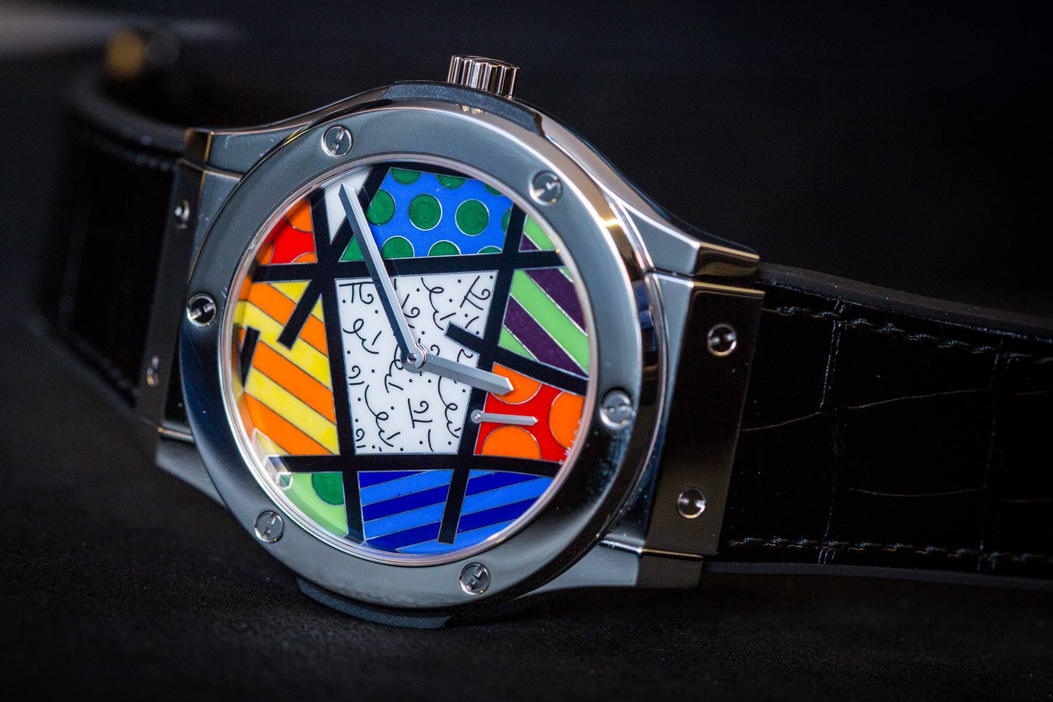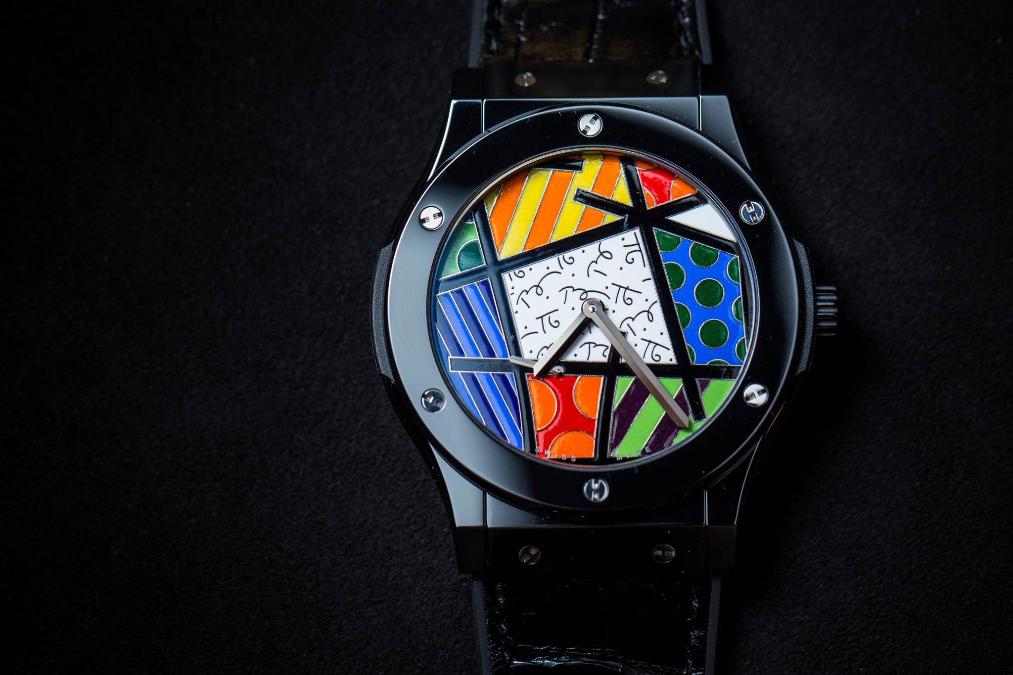 Hublot pushes the boundaries of fine watchmaking by creating a link between the traditional art of “grand feu” enameling and contemporary art movements of Pop Art and Cubism, found in the work of Romero Britto.