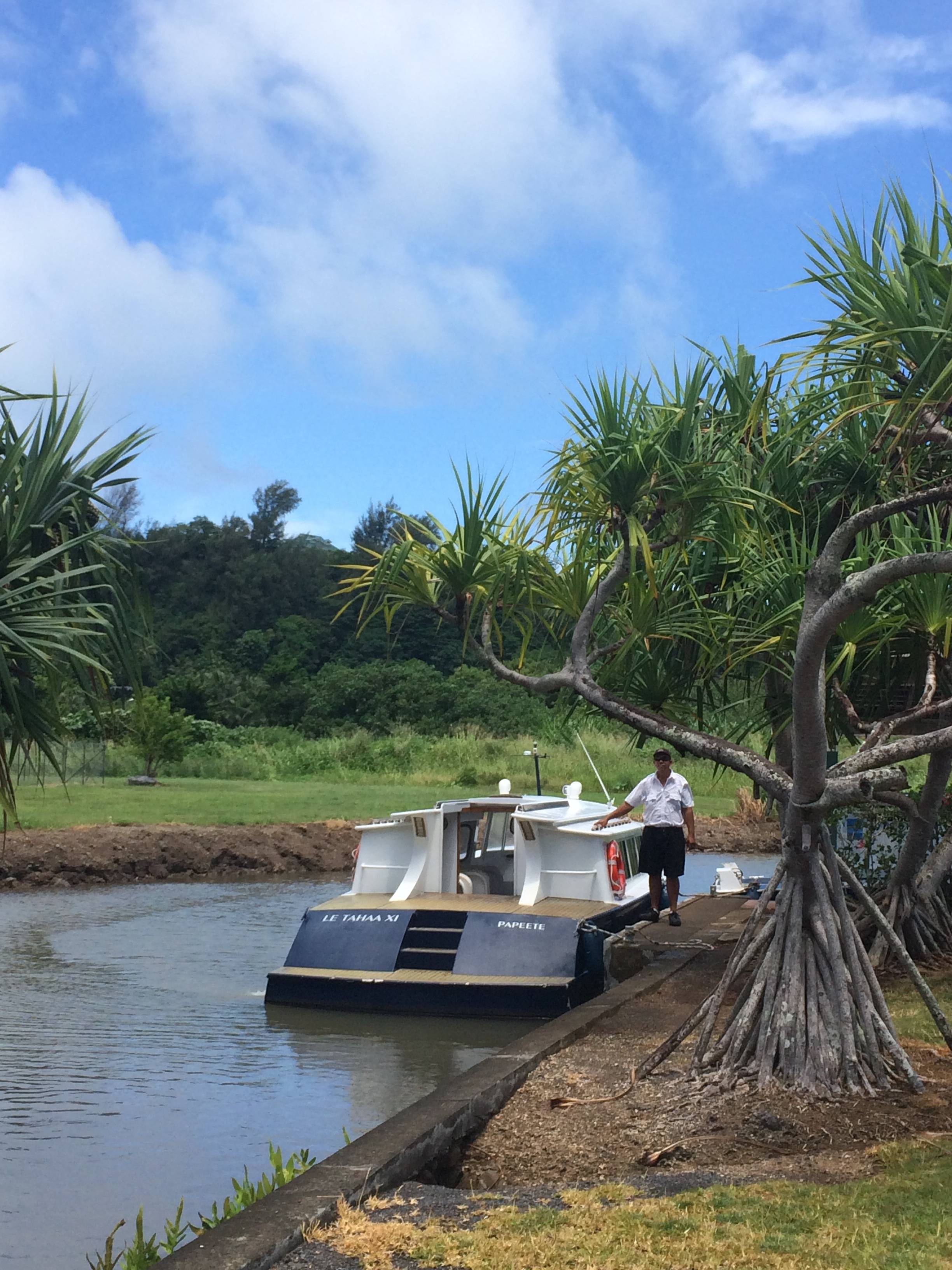 Taha’a does not have an airport, so you get to it through its neighboring island Raitea, a 35 min boat ride away. Our hotel picked us up from the airport in a cute private boat taxi and drops you right on it’s gate … this is where we felt like we’ve just made our arrival at the gates of paradise. At this point, I contemplated throwing my phone into the water before I entered. We were greeted by the warmest hotel staff with customary floral necklaces and I got a special freshly made floral head wreath.