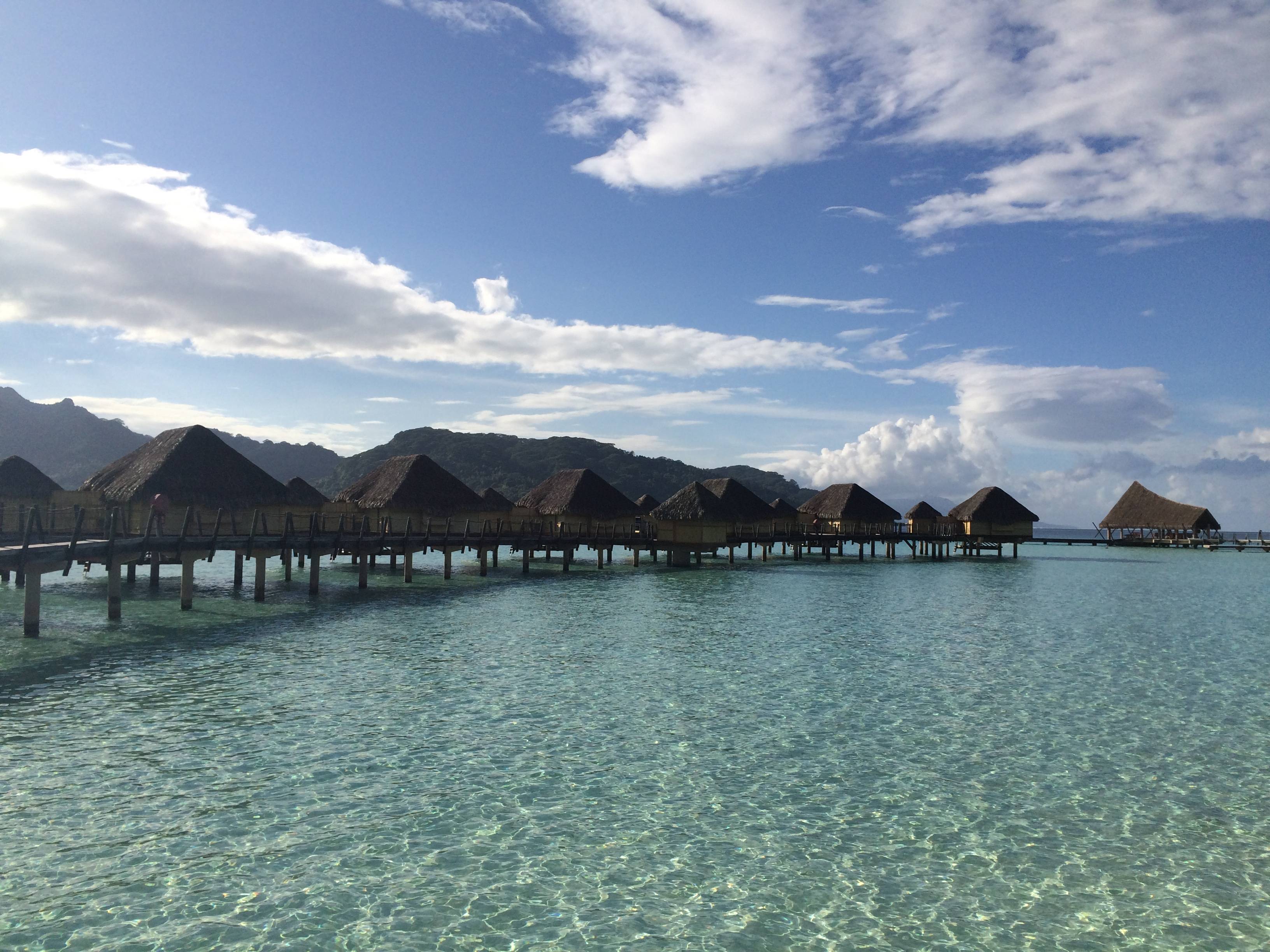 After checking in, we were taken to our over water room, that had beautiful views of the Pacific ocean and the Island of Taha’a.