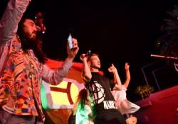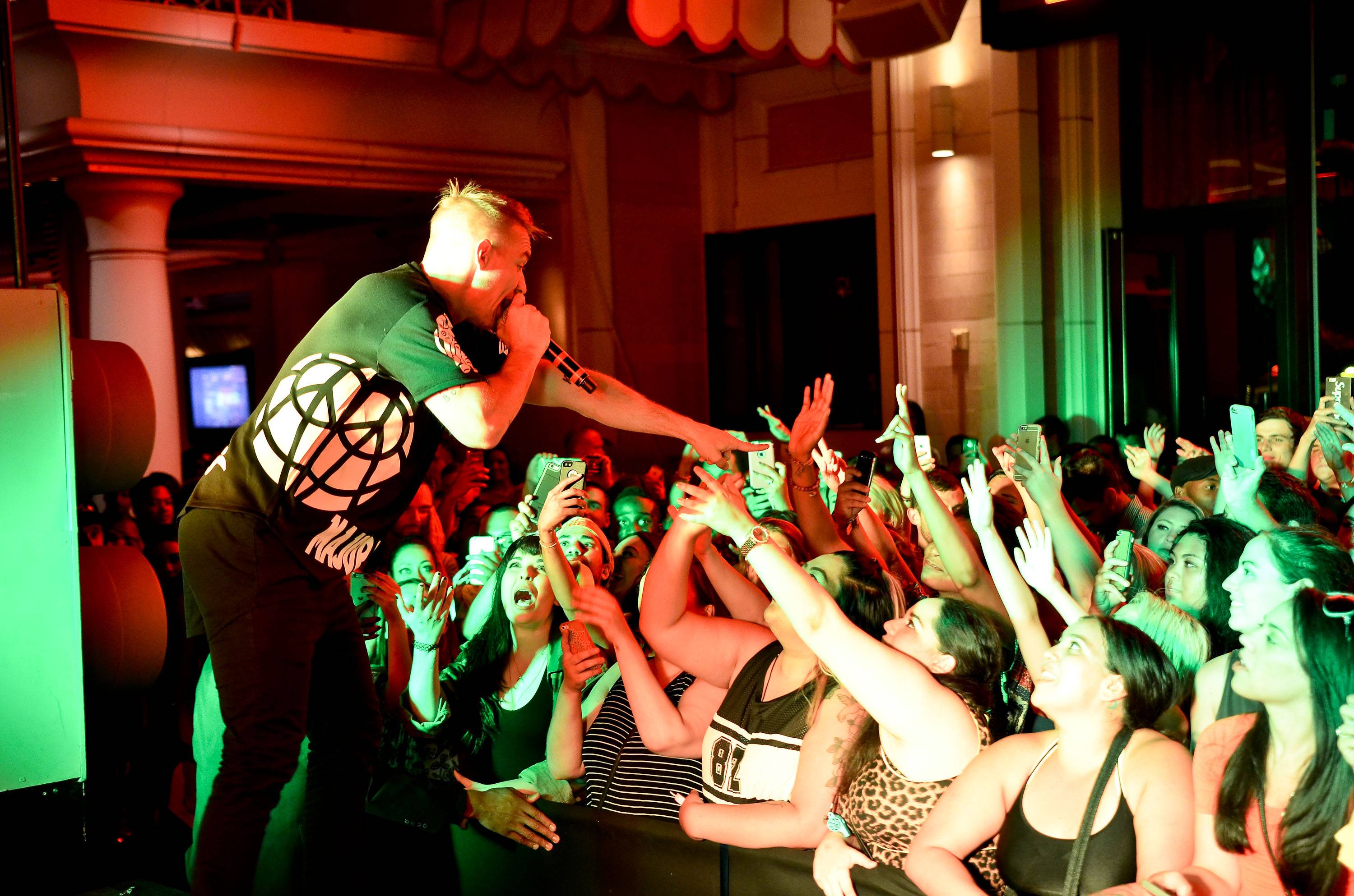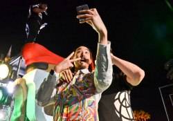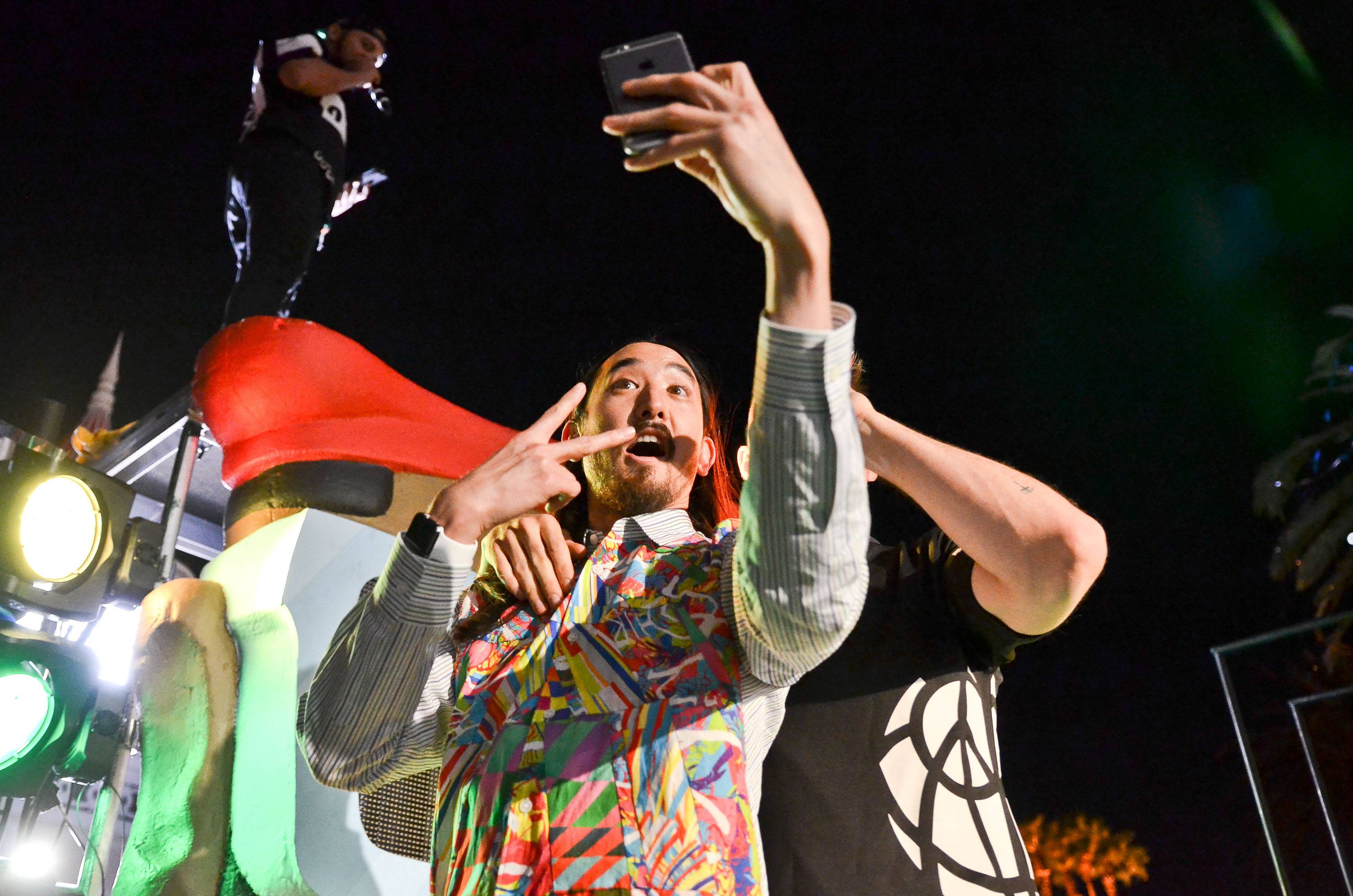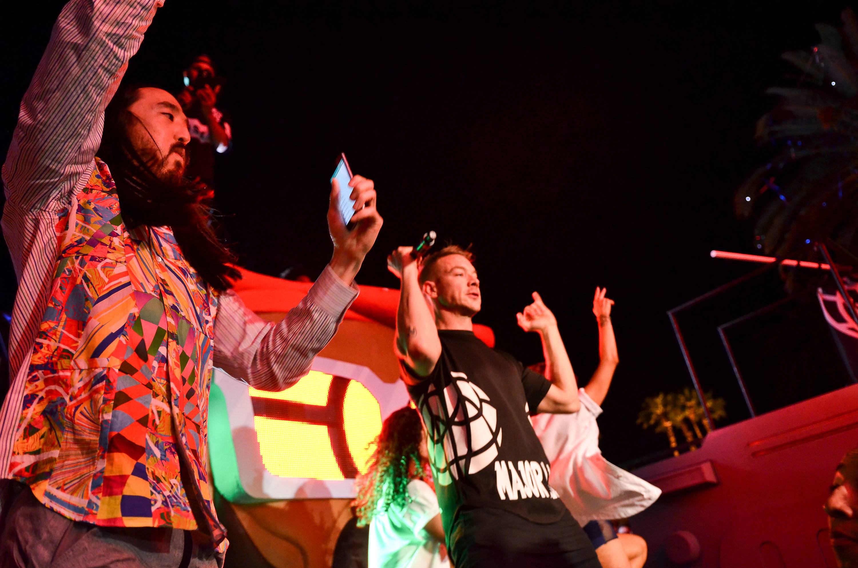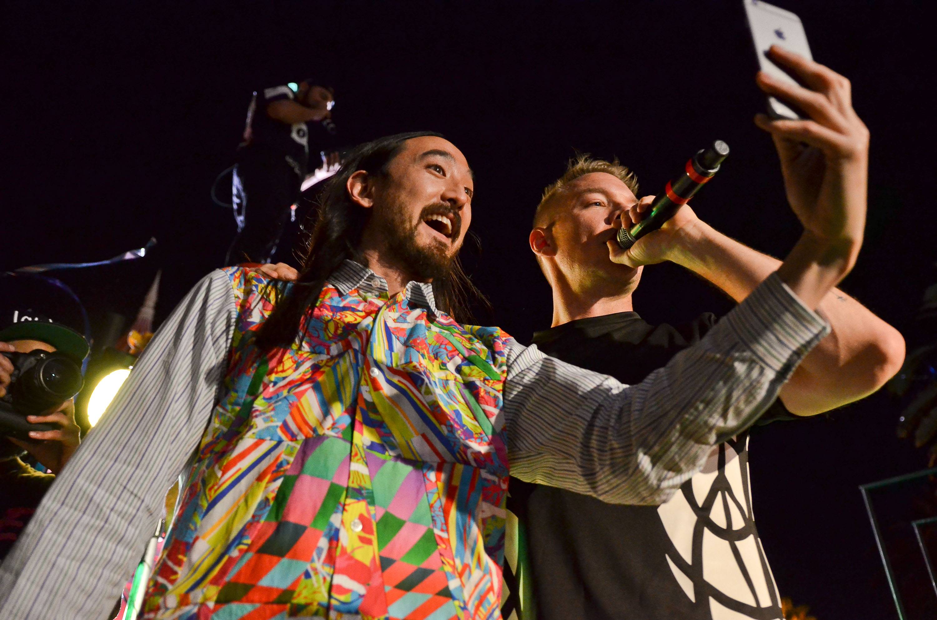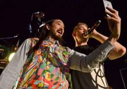 Steve Aoki surprised the capacity crowd by joining Diplo and crew on the deejay stage, where he was seen snapping selfies as Diplo worked the mic.