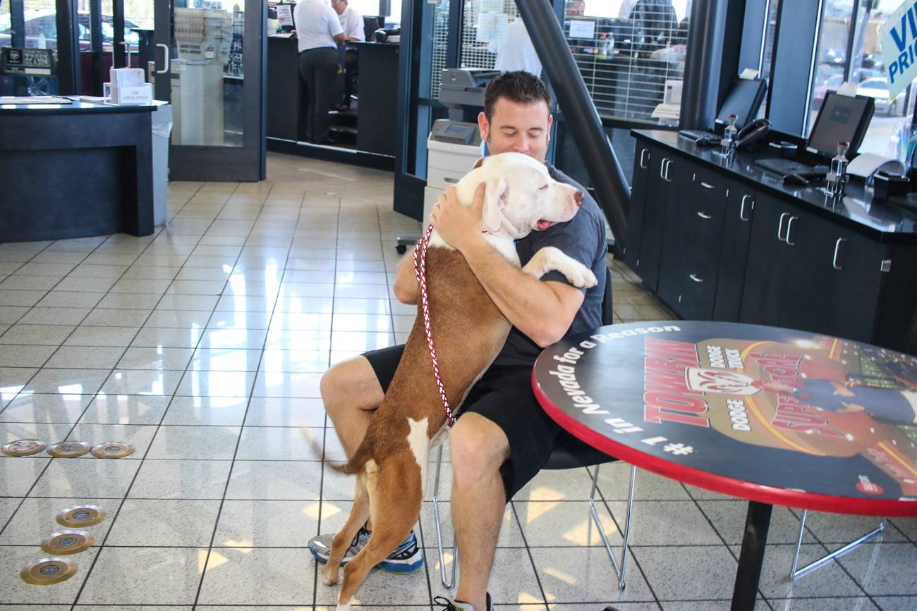 Towbin Dodge hosted an animal adoption drive in partnership with the Nevada SPCA on Saturday afternoon. The Towbin Dodge showroom played host to a variety of dogs in need of loving homes. In conjunction with the adoption drive, Towbin Dodge donated $150 to the Nevada SPCA for each vehicle sold on Saturday.