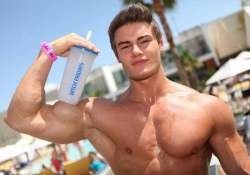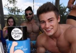 Also spotted having fun in the sun was social media star and fitness enthusiast Jeff Seid, who was celebrating his 21st birthday. Seid was all smiles when the dayclub presented him with an over-the-top three-tier fitness-inspired cake that read “On Instagram Straight Flexin’.”