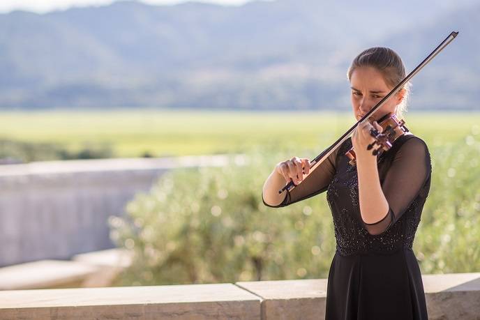 Blue was the color of the evening, from the water goblets to the tablecloths to the entertainment, courtesy of New York City’s famed Blue Note Jazz Club. For the evening, “A Night at the Blue Note,” Far Niente executive chef Trevor Eliason expertly prepared a Maine lobster salad (paired with 2013 Far Niente Estate Bottled Chardonnay) and slow-roasted petite filet of akausi beef (paired with 2012 Far Niente Estate Bottled Cabernet Sauvignon and 2005 Far Niente Cave Collection Cabernet Sauvigno. During dinner, violin virtuoso Regina Carter whetted diners’ appetites with a sensational performance. After the meal, guests enjoyed a live jazz performance by the Regina Carter Trio, featuring Marvin Sewell and Jesse Murphy, in the Carriage House, amongst the Nickel’s car collection and where an irresistible display of desserts beckoned. Naturally, there was more wine, a 2008 Dolce to be exact, and an espresso cart.