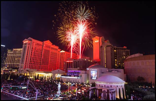 Caesars Palace and The LINQ Promenade celebrated the Fourth of July weekend in Las Vegas with a fireworks display at Caesars Palace. The iconic center Strip fireworks show began at 9:15 p.m. and brightened the summer night sky.