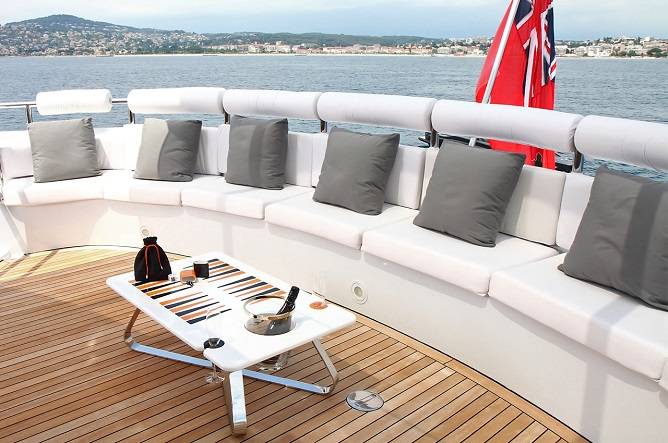 If you plan to take it on your yacht, know that the gaming table is a substantial and weighty piece of furniture so it will stay firmly in place on board. It’s made from hard wearing and waterproof materials with easy clean surface. In addition, all of the glassware is removable for safe storage when not in use and the legs are easily detachable for off-season storage.