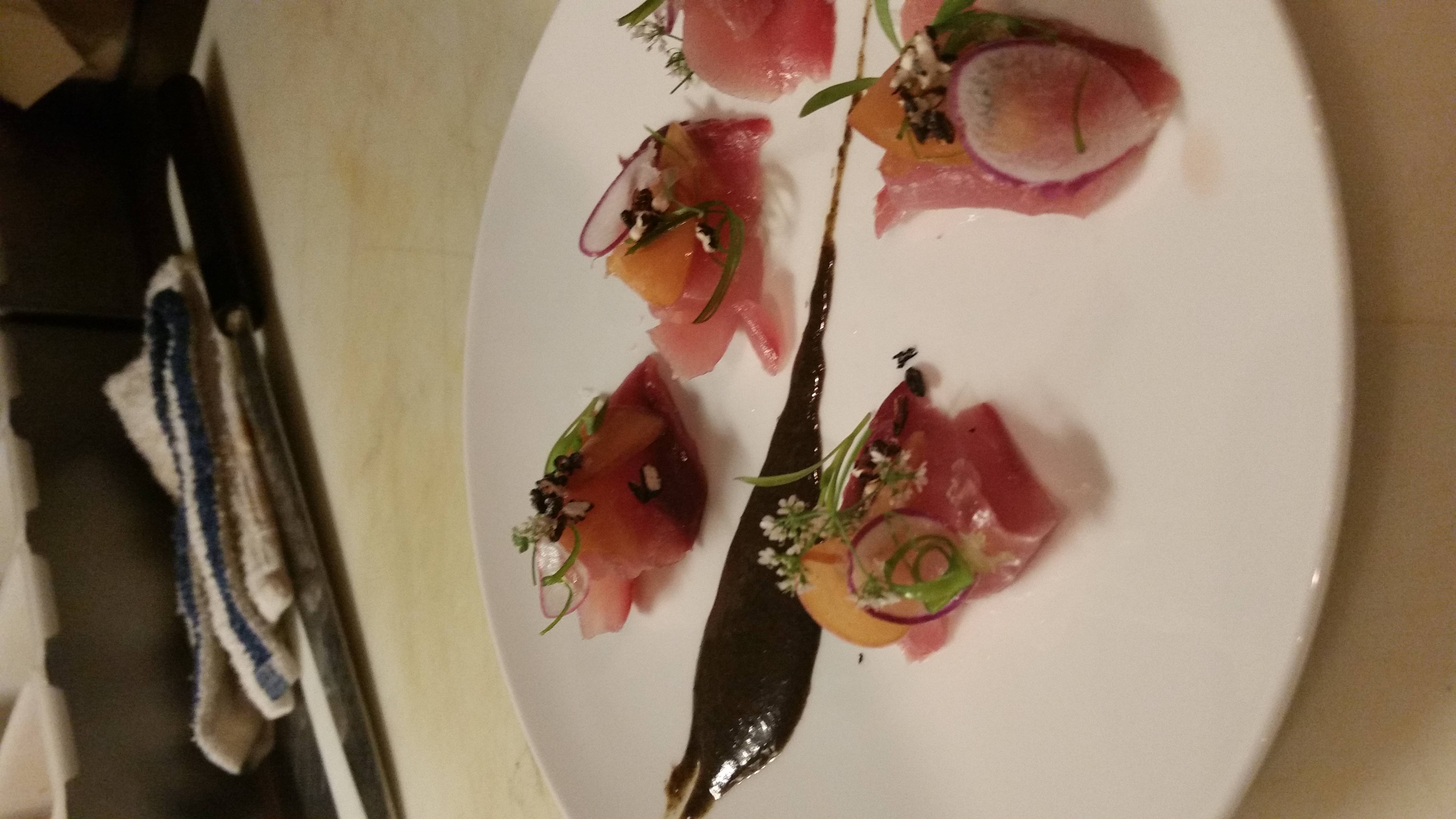 For starters, you must order some oysters (because who can help themselves in such a specific seafood-style eatery?) followed by the delicious hamachi with nori-garlic puree and pickled stonefruit. For a healthy, Venice-style salad option, order up the market kale salad of quinoa, almonds, cranberries and tomatoes as well as the Brussels sprouts with pickled plum pearls, crispy sage and bacon.