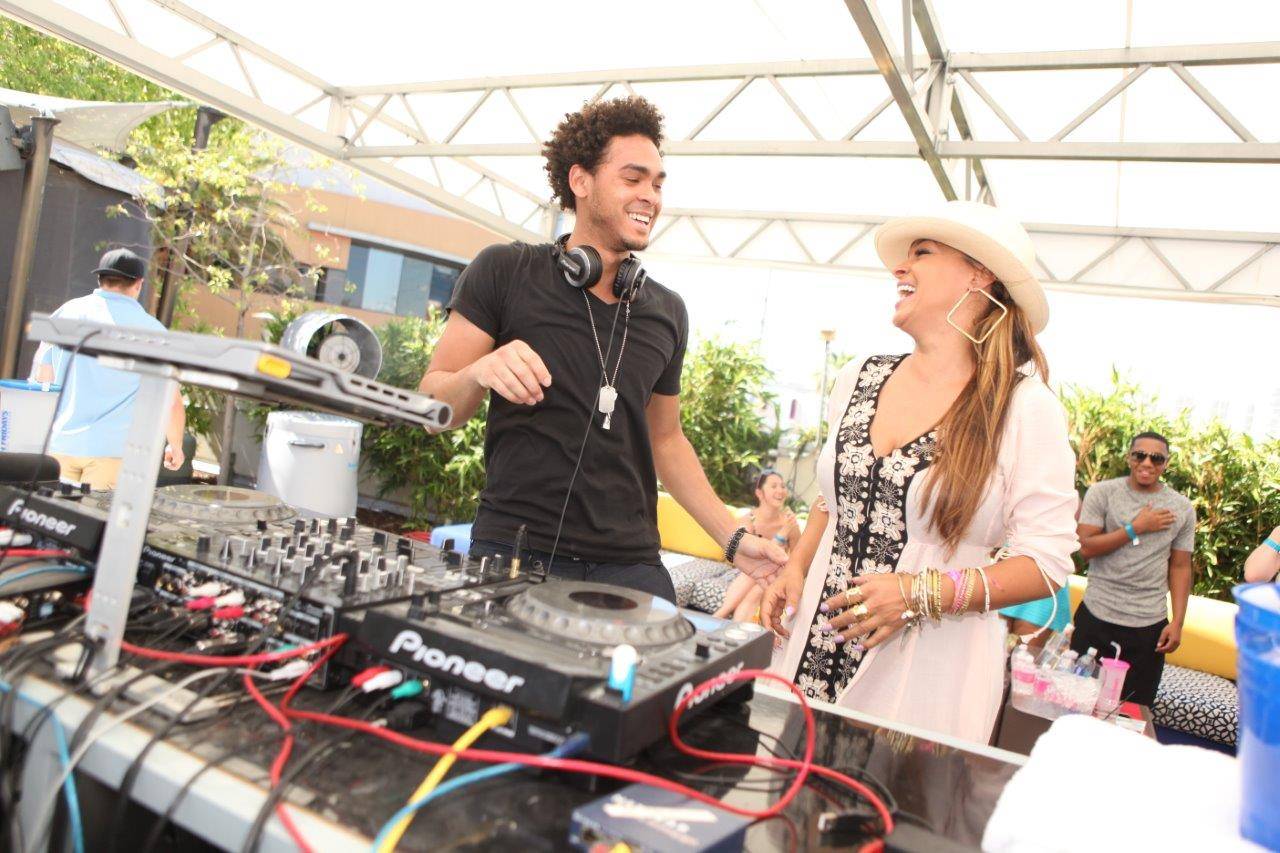 DJ Ace aka Trey Smith kicked off Independence Day weekend and Ditch Fridays at Palms Pool & Dayclub on Friday, July 3, on the decks. The son of actors Will Smith and Sheree Fletcher was joined by a crew of 10 including his mother and his girlfriend Rachel List and other friends. The crew partied on stage as Ace played hit after hit and kept the pool crowd splashing around.