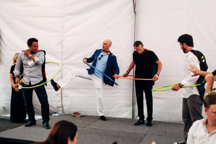 The event began with a colorful parade of animals walking down a red carpet; it included an unprecedented pre-auction walk-around tasting with 60 of Napa Valley’s wine glitterati pouring their wines and food prepared by local restaurants and food trucks. The line-up included Oenotri, La Toque, City Winery, Cook, Cook Tavern and The Grill at Meadowood. Local rock & roll band Wristrocket entertained guests late into the night with more food from Dabba, Ca’ Momi, Clif Family Bruschetteria, La Foret Chocolates, and Raw Daddy Food Truck, with libations from The DUKE Beverage Truck.