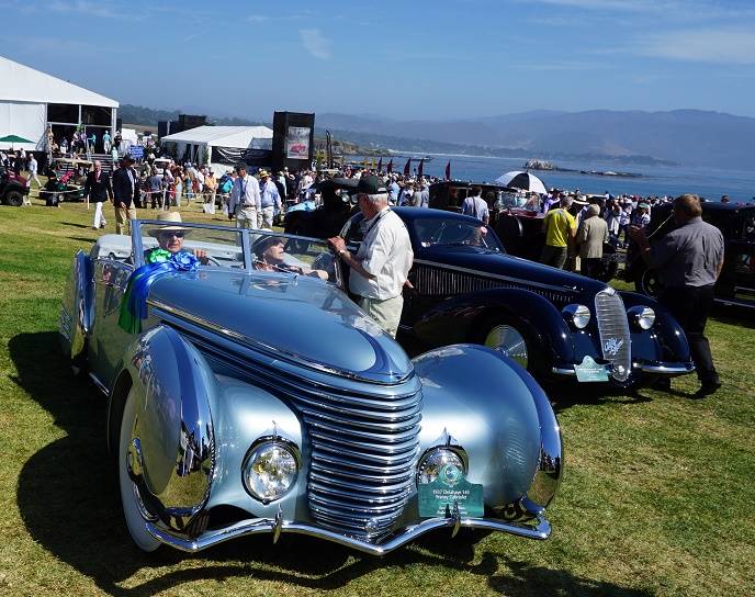 “The first one was just the thrill of a lifetime,” said Patterson, who won in 2010 with a 1933 Delage D8S De Villars Roadster. “I came here with a white car. No one had ever won Best of Show with a white car, so I didn’t want to try that again. I came with an all black car… I think it’s more exciting this year because we had tremendous competition. Sam and Emily Mann had a fantastic car. I really kind of expected them to win. I’m sort of overwhelmed.”