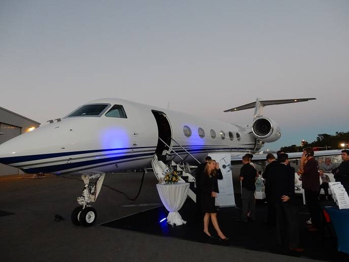 Also drawing lots of attention at the event was Gulfstream’s G450, a high-performance, stylish aircraft that can cross a continent and cruise at Mach 0.80. Was it any surprise that waiting to board was real estate agent Roh Habibi, the star of Bravo’s Million Dollar Listing San Francisco? Is business that great for this agent that he’s shopping for a private jet?