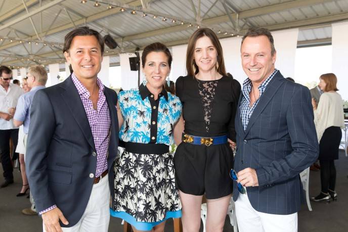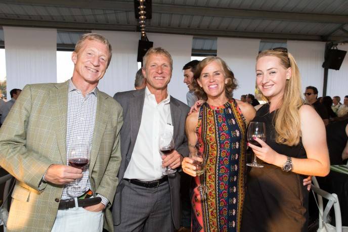 Cowie outfitted the cocktail deck, dining area and the jumping fences in his corporate color scheme—a lively and summery mix of lime green and white– and a motif of stripes. “I can never resist a good stripe ever,” quipped the native South African and the author of 10 books. He brought in Double Cross Vodka for the custom cocktail drinks that welcomed guests as they walked in and he curated the menu that included English pea soup, Moroccan lamb and quinoa cake, prepared by Park Avenue Catering in Sonoma. Rombauer Vineyards offered up the Chardonnay and nearby Keller Estate the Pinot Noir.