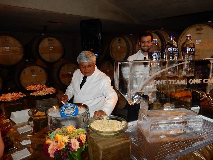 The memorable evening began with a hors d’oeuvres reception and Super Silent Auction inside the Nickel & Nickel winery barrel chai. Guests sipped JCB No. 21 Brut Cremant de Bourgogne and nibbled on bites as they decided which items to bid among the selection of authentic, high-quality sports memorabilia, amazing wine selections, limited-edition signed masterpieces, vintage photographs, fashionable clutch purses, fine-dining experiences and accommodations in luxury hotels.