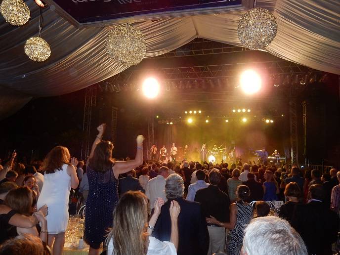 The sit-down dinner included a five-course gourmet meal paired with Nickel & Nickel wines preceded the auction. Following the auction, Huey Lewis & The News took the grand stage to perform under the stars. “We used to be a beer and hot dog band,” Lewis said to the crowd. “Now we’re hanging out with the wine and cheese set.”